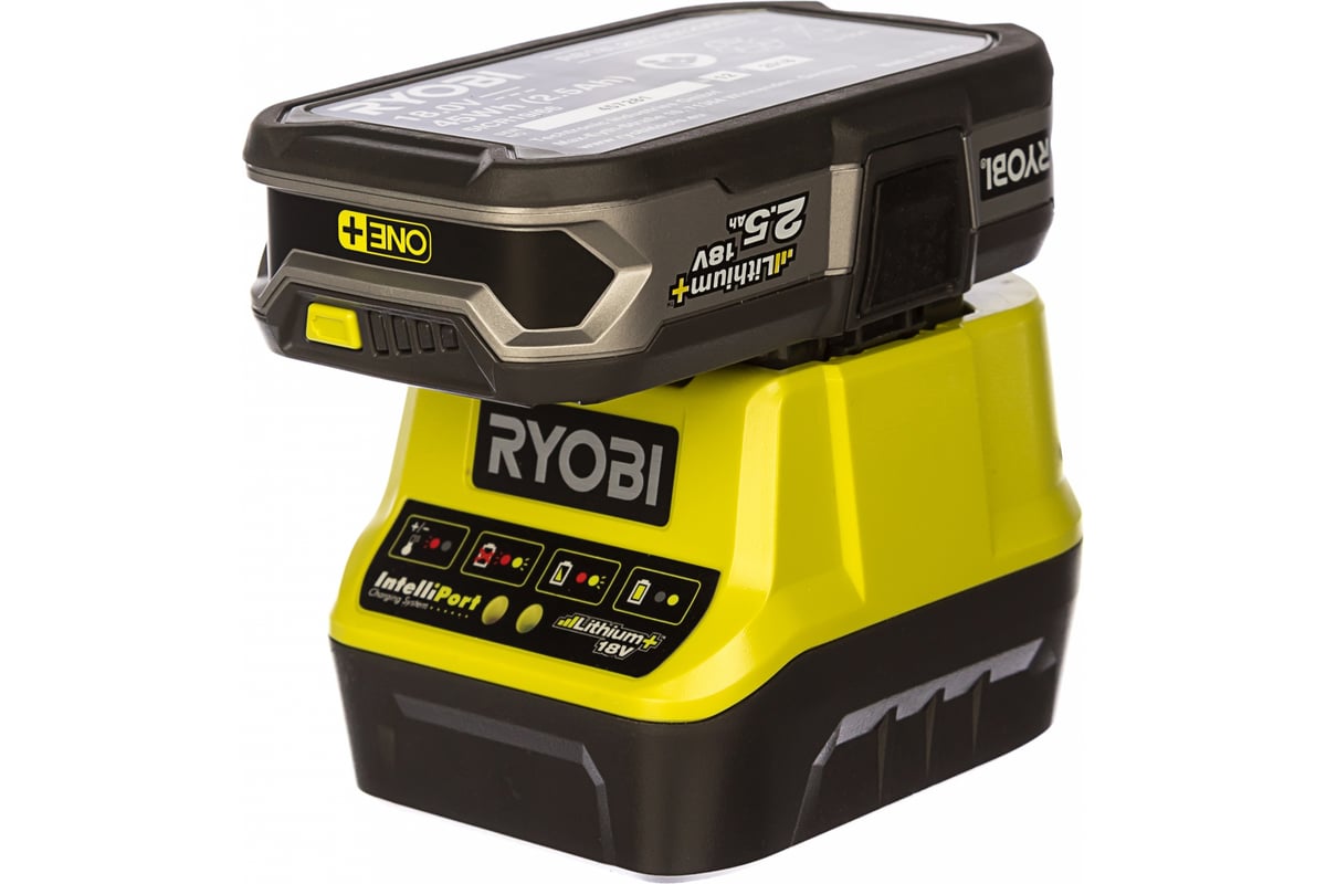 • Универсальное зарядное устройство позволяет доукомплектовывать набор любым аккумулятором Ryobi 18В