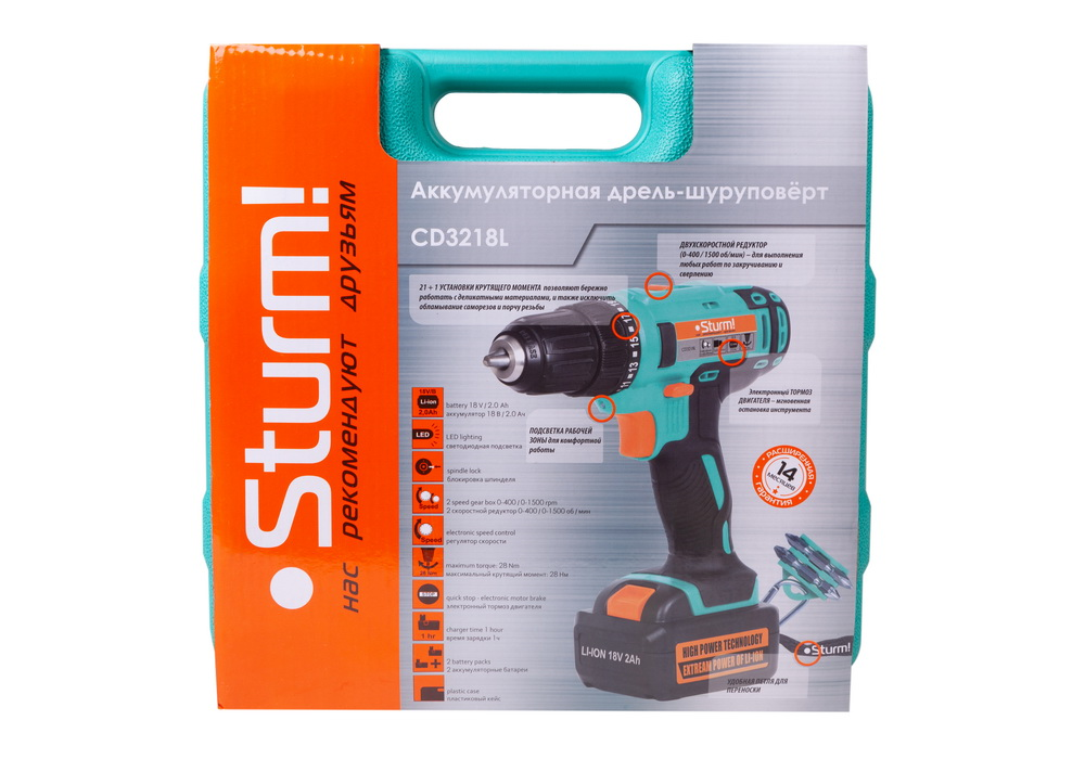 Аккумуляторная дрель-шуруповерт 18 В, кейс Sturm! CD3218L