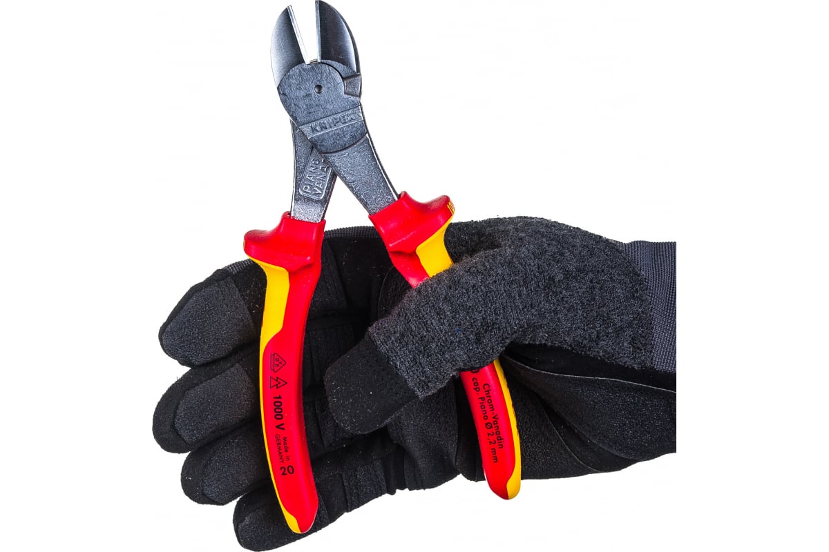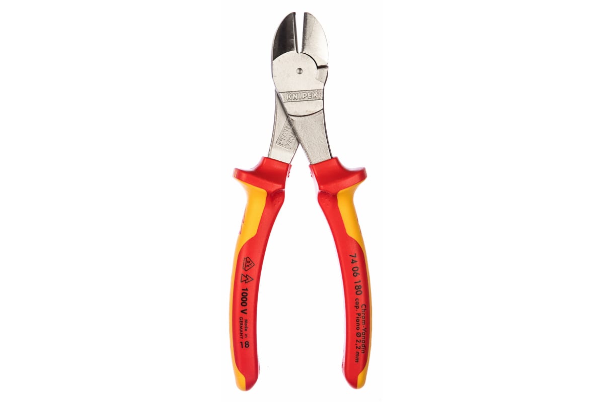 Силовые бокорезы KNIPEX KN-7406180 применяются для резания проводов и проволоки разной степени твердости. Инструмент изготовлен из хромованадиевой электростали и имеет хромированную рабочую головку для обеспечения более точной работы и защиты от влияния коррозии. Двухкомпонентные чехлы рукояток данных бокорезов испытаны на соответствие нормам VDE и могут применяться для электротехнических работ с переменными токами напряжением до 1000 В и с постоянными токами напряжением до 1500 В.