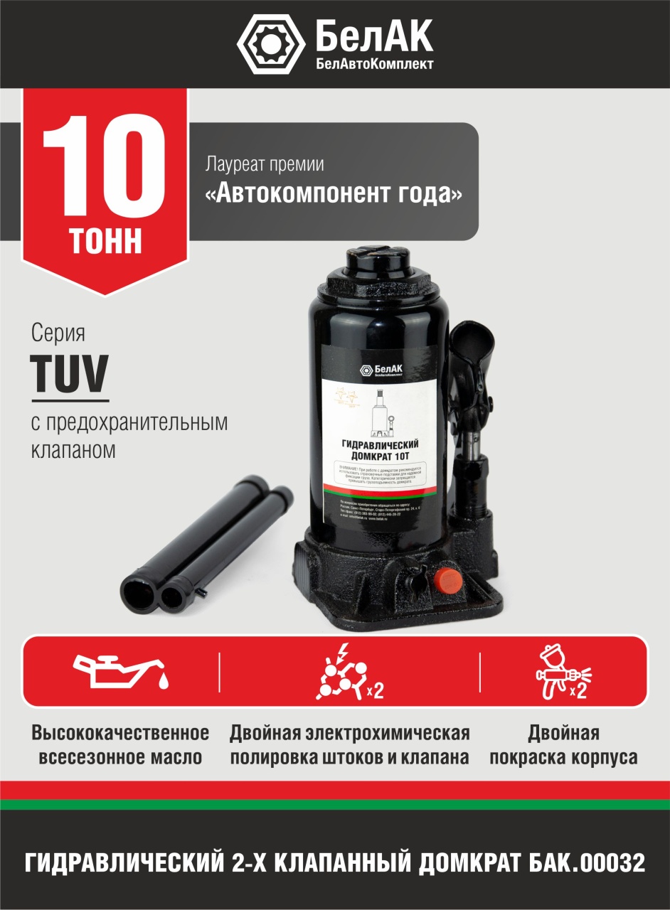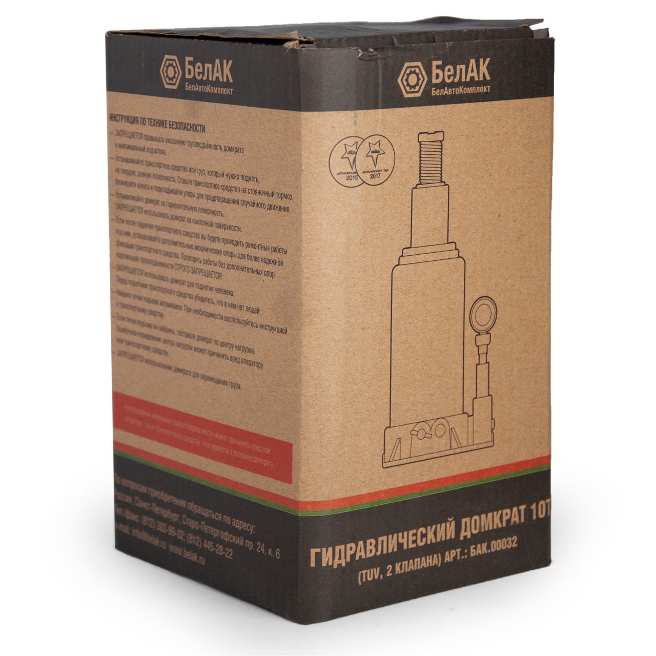 Домкрат бутылочный 10 т, с предохранительным клапаном БелАК БАК.00032