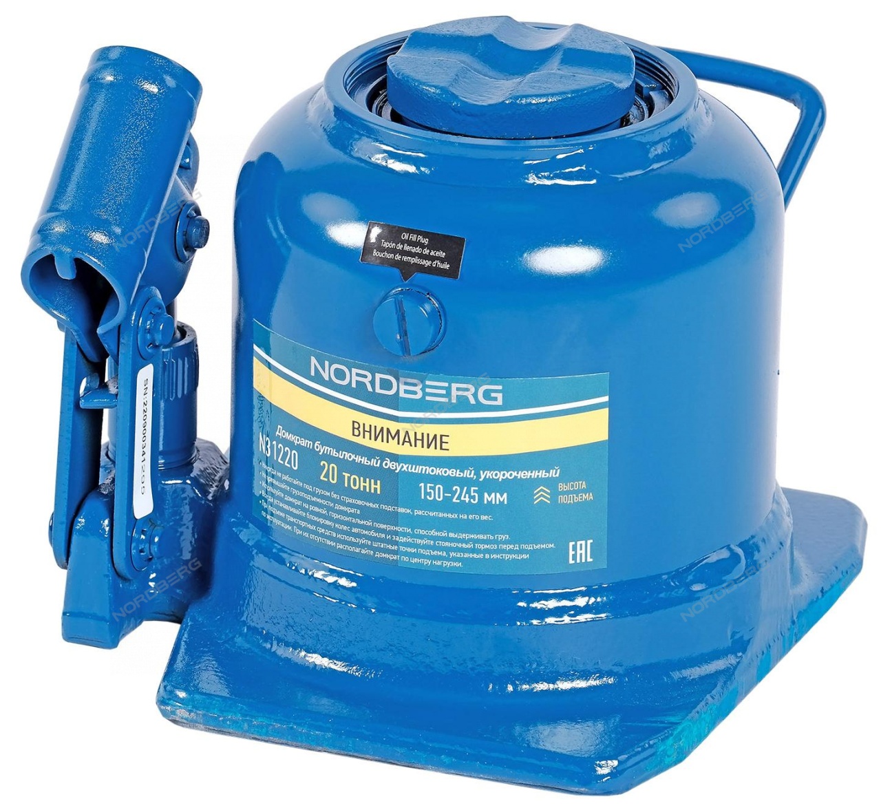 Домкрат бутылочный двухштоковый, укороченный 20 т NORDBERG N31220.