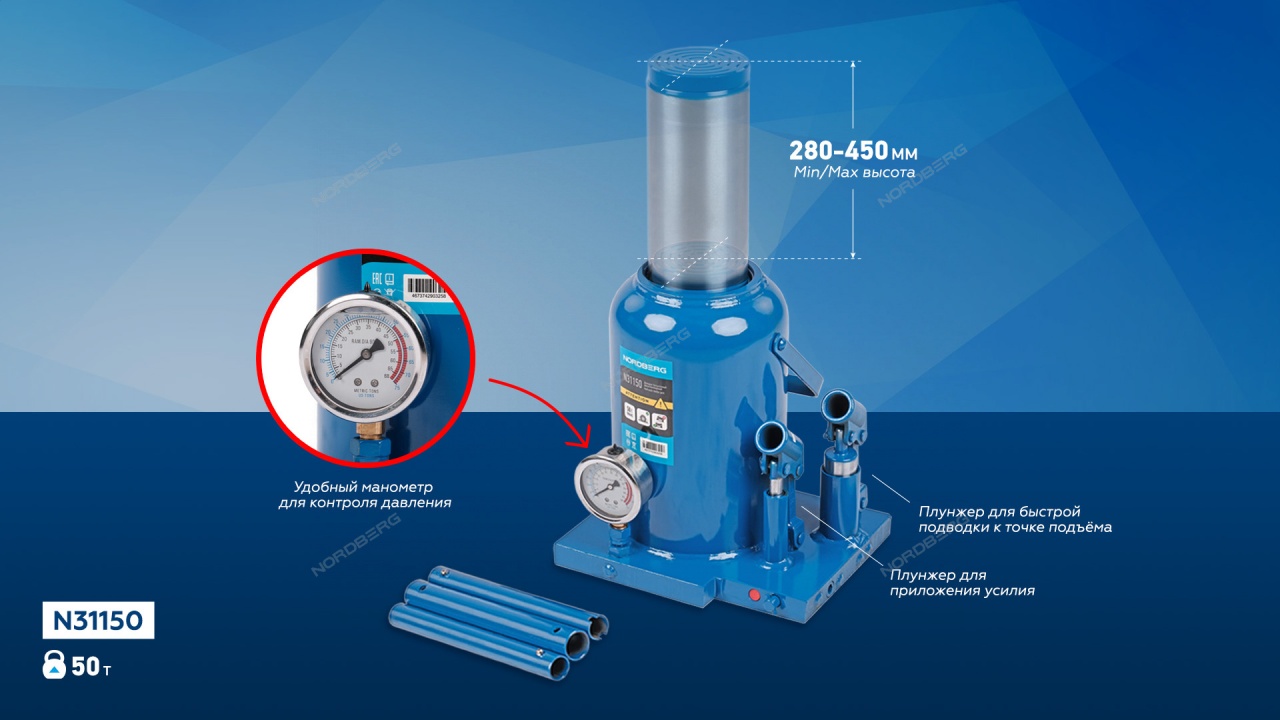 Гидравлический бутылочный домкрат NORDBERG N31150.