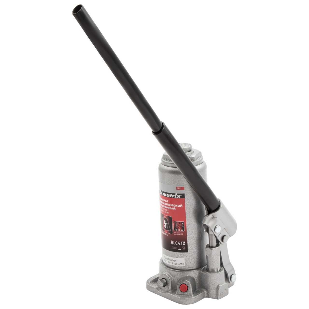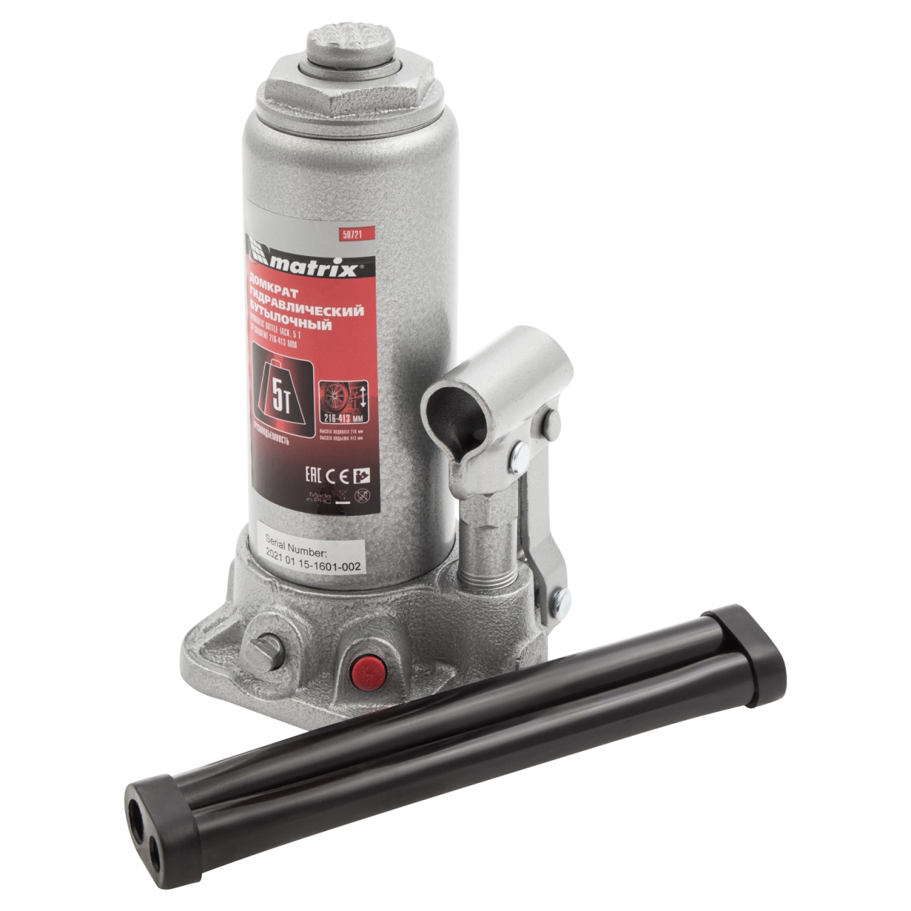 Домкрат гидравлический бутылочный Matrix 50721 используется для поднятия грузов массой до 5 т на высоту 216-413 мм. Подходит для автомобилей с высоким клиренсом. Домкрат будет полезен автолюбителям в гараже и дороге, а также сотрудникам СТО.