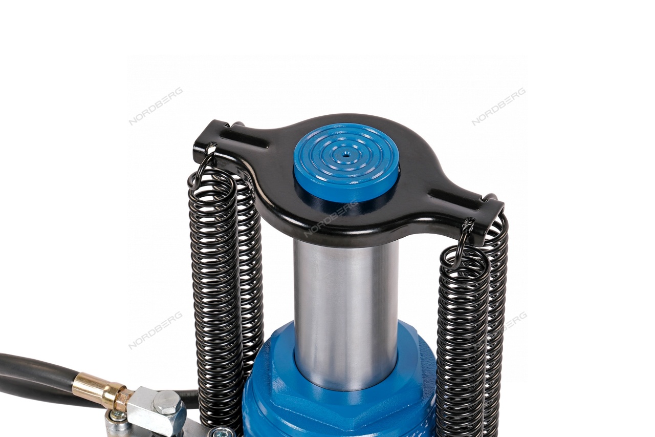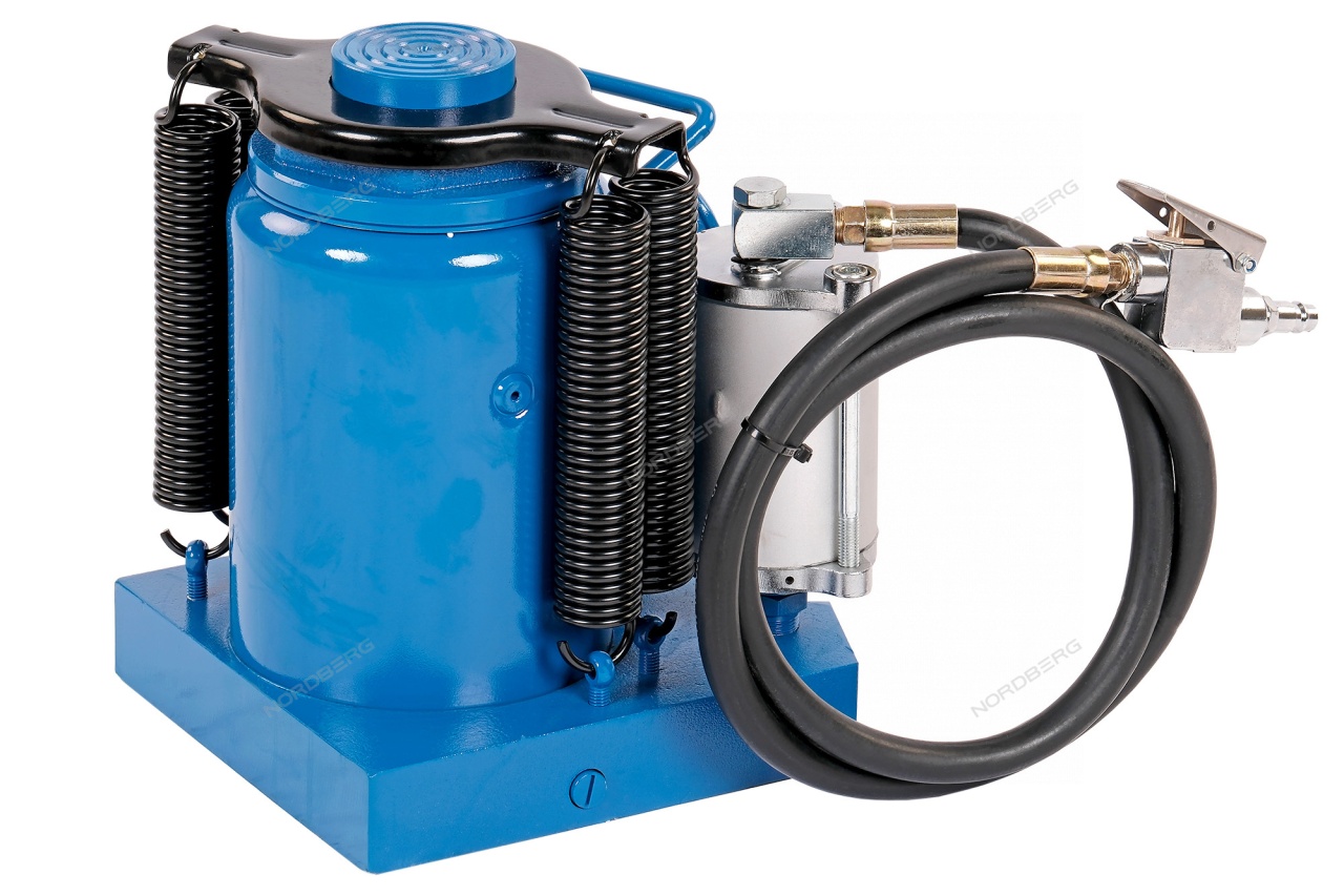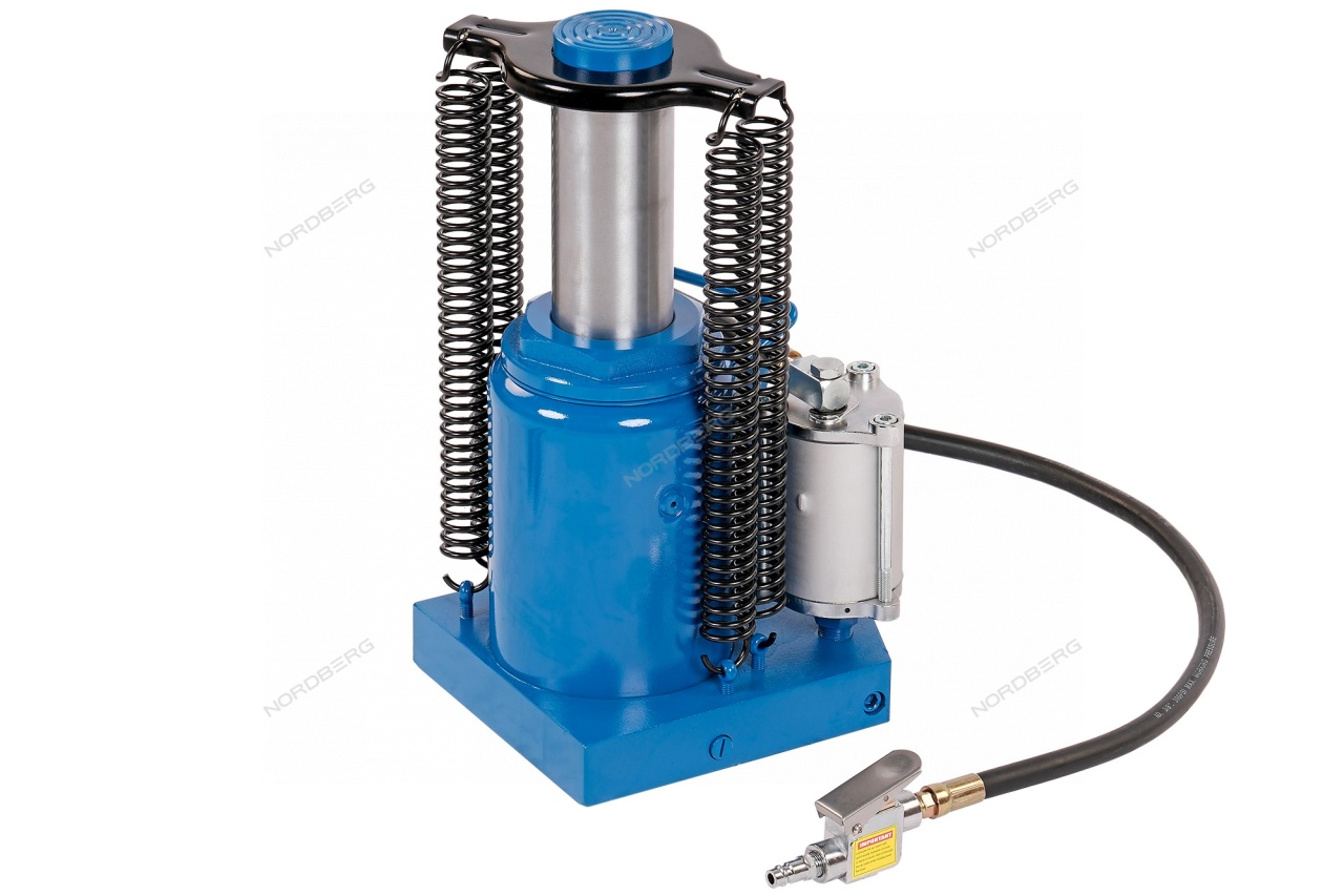 Домкрат бутылочный пневмогидравлические NORDBERG N31335 предназначенный для поднятия грузов при помощи ручного или пневматического привода. Бутылочный домкрат отличается компактностью конструкции, простотой обслуживания и надежностью в эксплуатации. Он позволяет осуществлять плавный подъем груза при небольшом рабочем усилии благодаря высокому передаточному отношению между площадями поперечного сечения цилиндра и плунжера насоса. Широкое опорное основание позволяет использовать домкрат на любой поверхности, включая мягкий грунт.