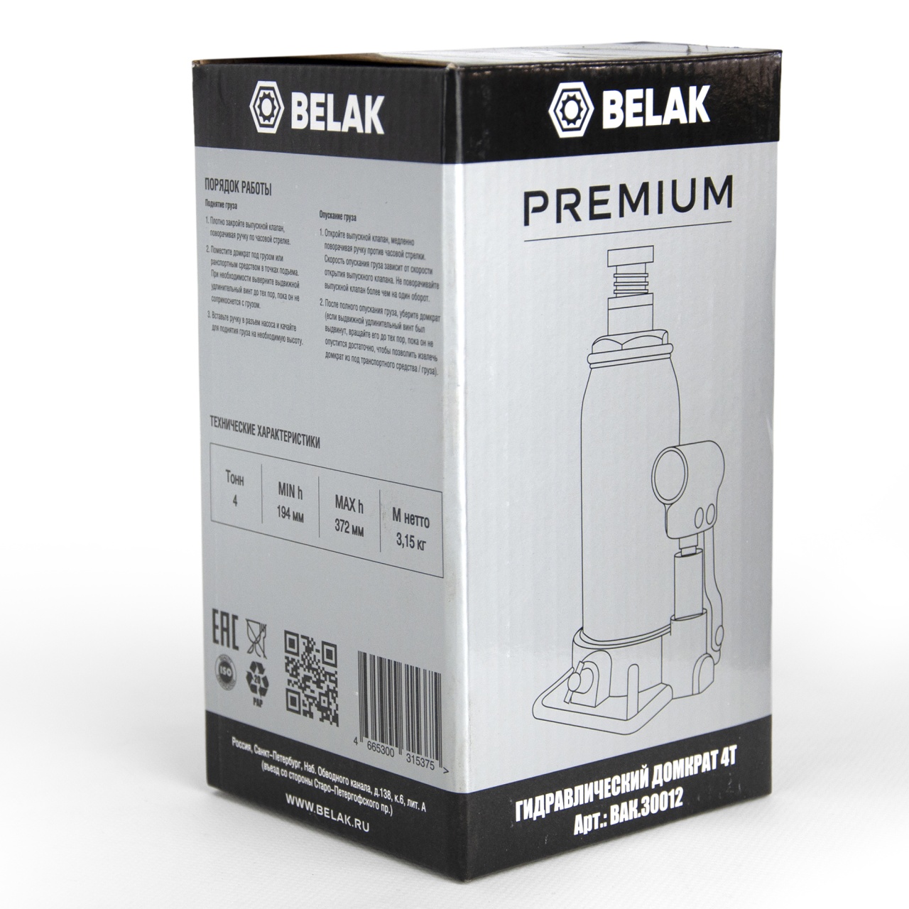 Гидравлический домкрат BELAK PREMIUM 4 т BAK.30012 разработан российским производителем «БелАК», награждённым двумя национальными премиями «Автокомпонент года» и «Автоаксессуар года» за высокое качество и надежность выпускаемых домкратов.