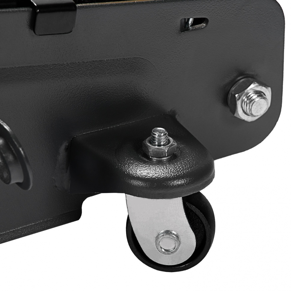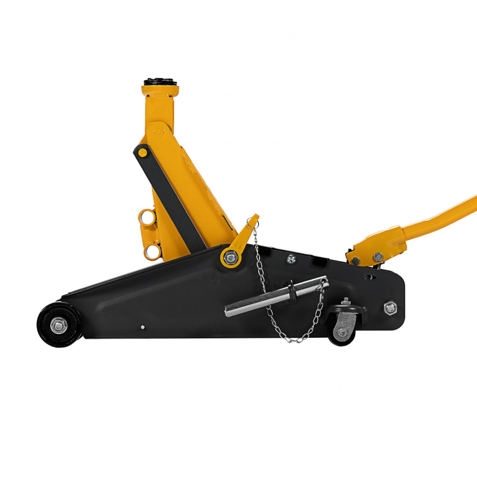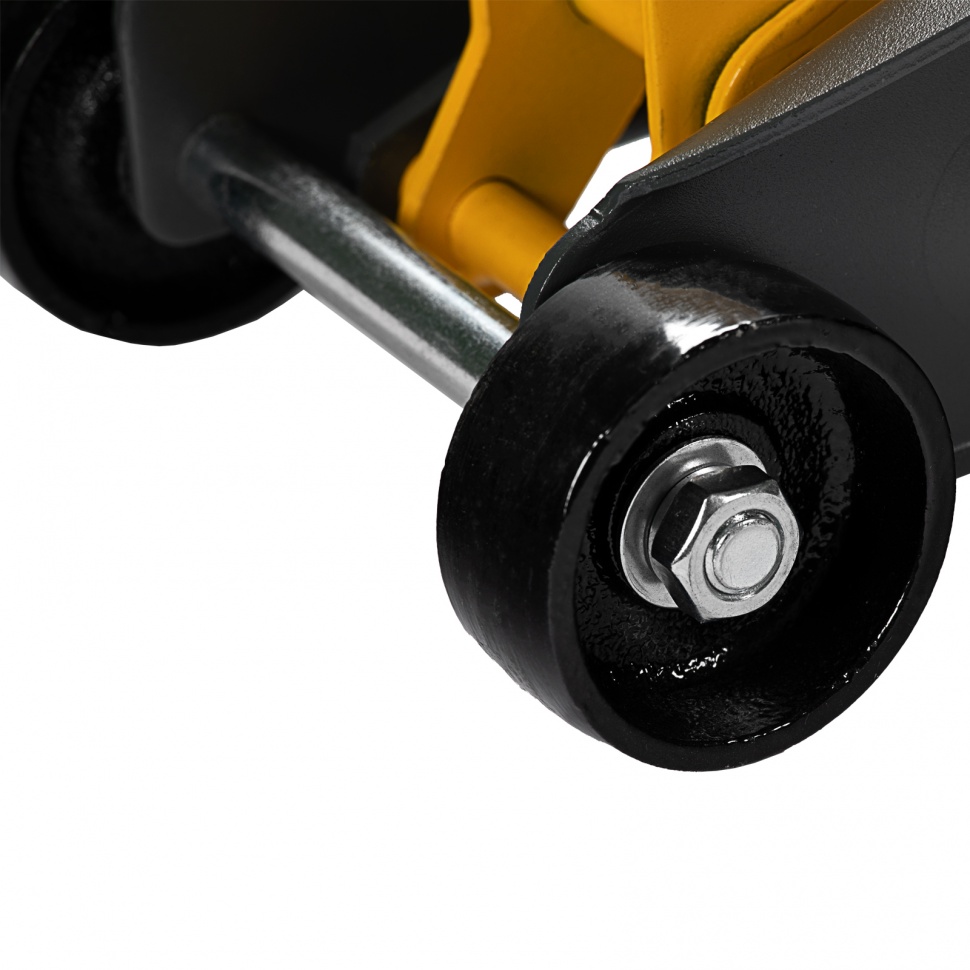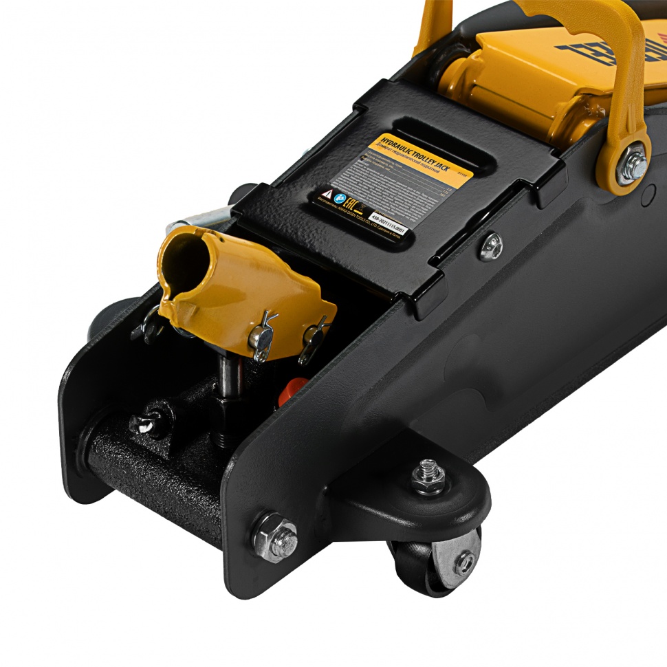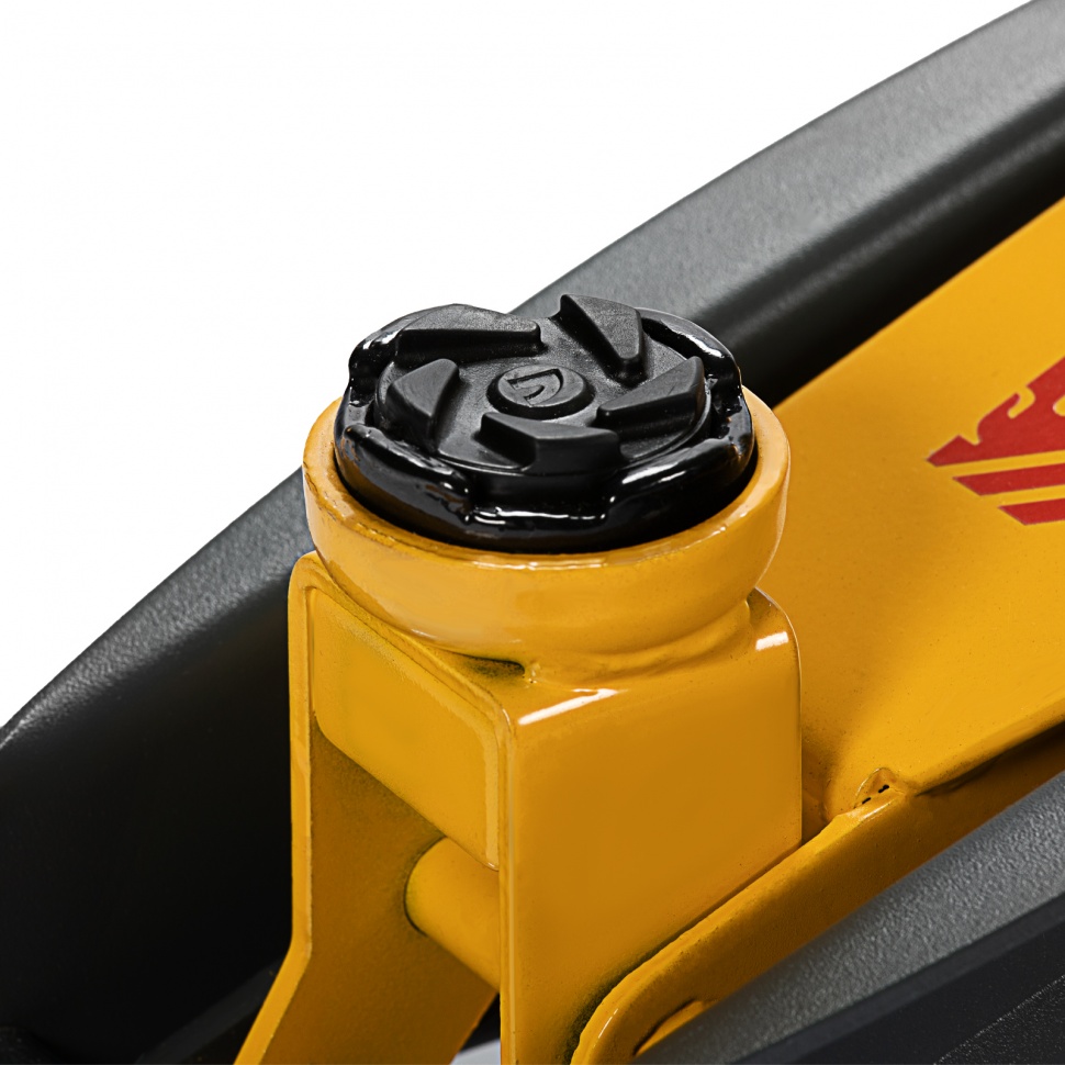 - Удобная рукоятка позволяет переносить домкрат с места на место и в случае необходимости переставляется на заднюю часть для удобного выкатывания из под автомобиля.