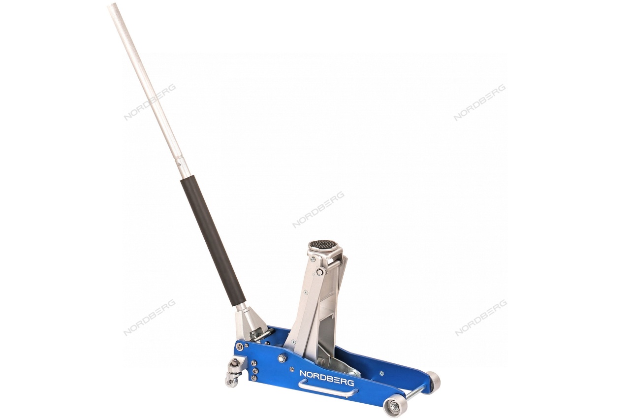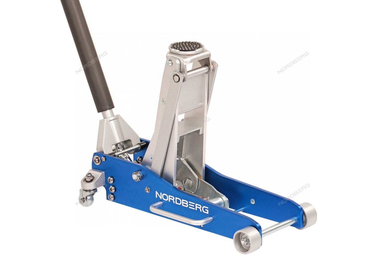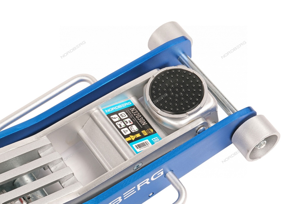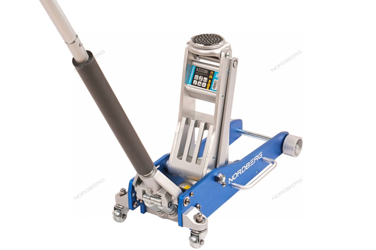 Гидравлический подкатной алюминиевый домкрат NORDBERG N32030N – передвижное подъемное оборудование для использования в небольших автомастерских и гаражах.