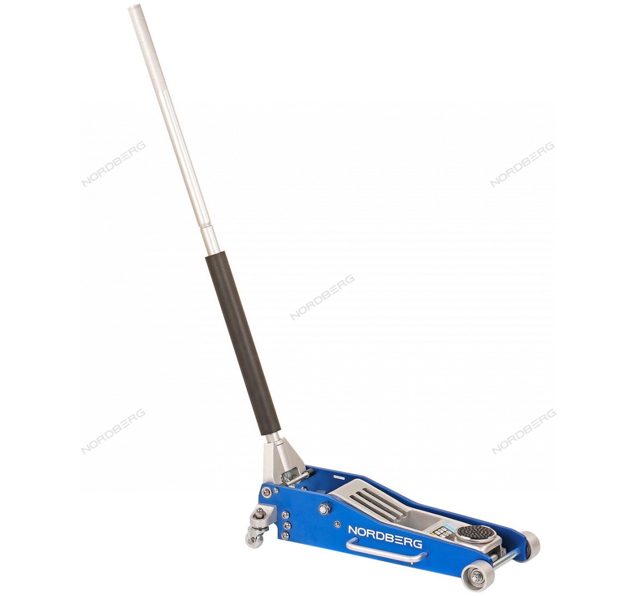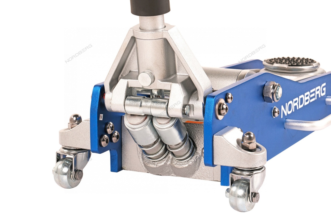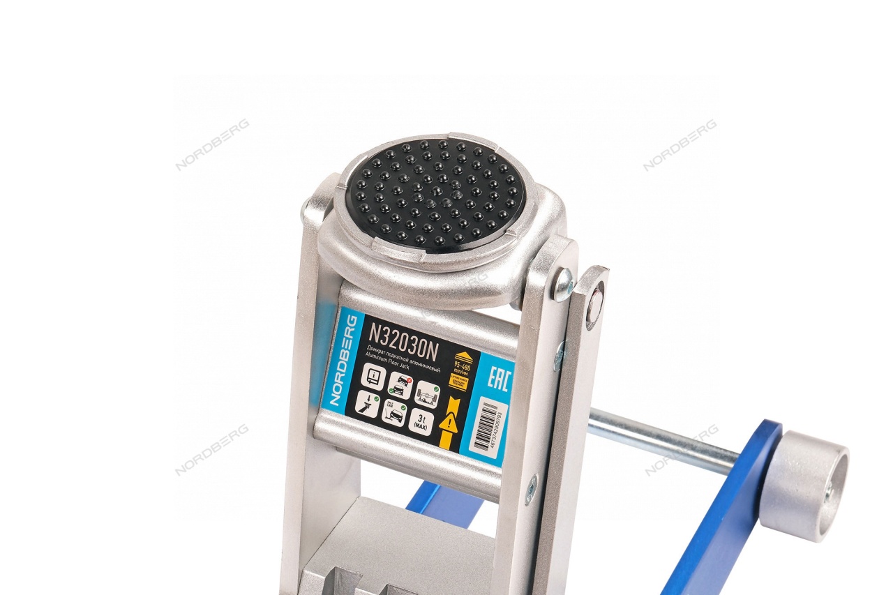 Гидравлический подкатной алюминиевый домкрат NORDBERG N32030N – передвижное подъемное оборудование для использования в небольших автомастерских и гаражах.