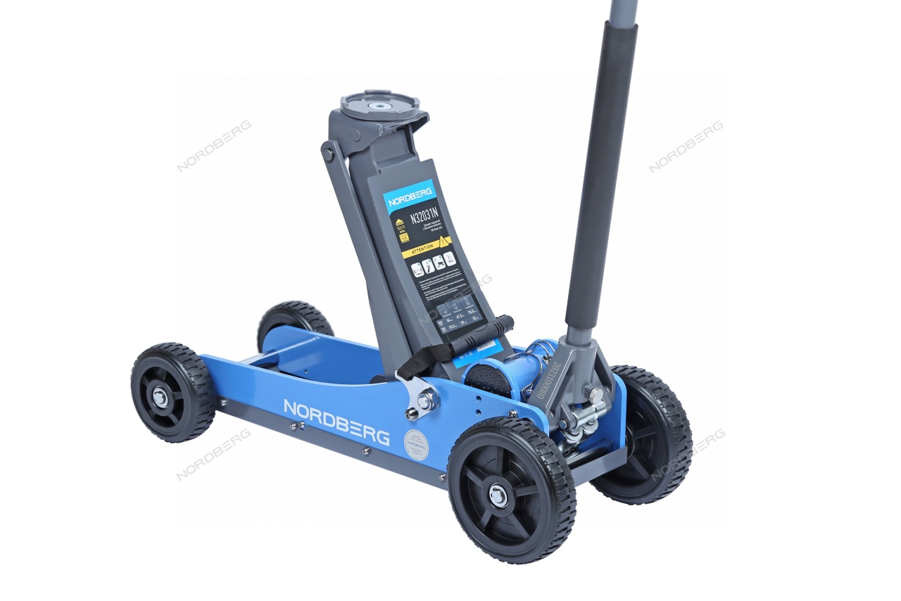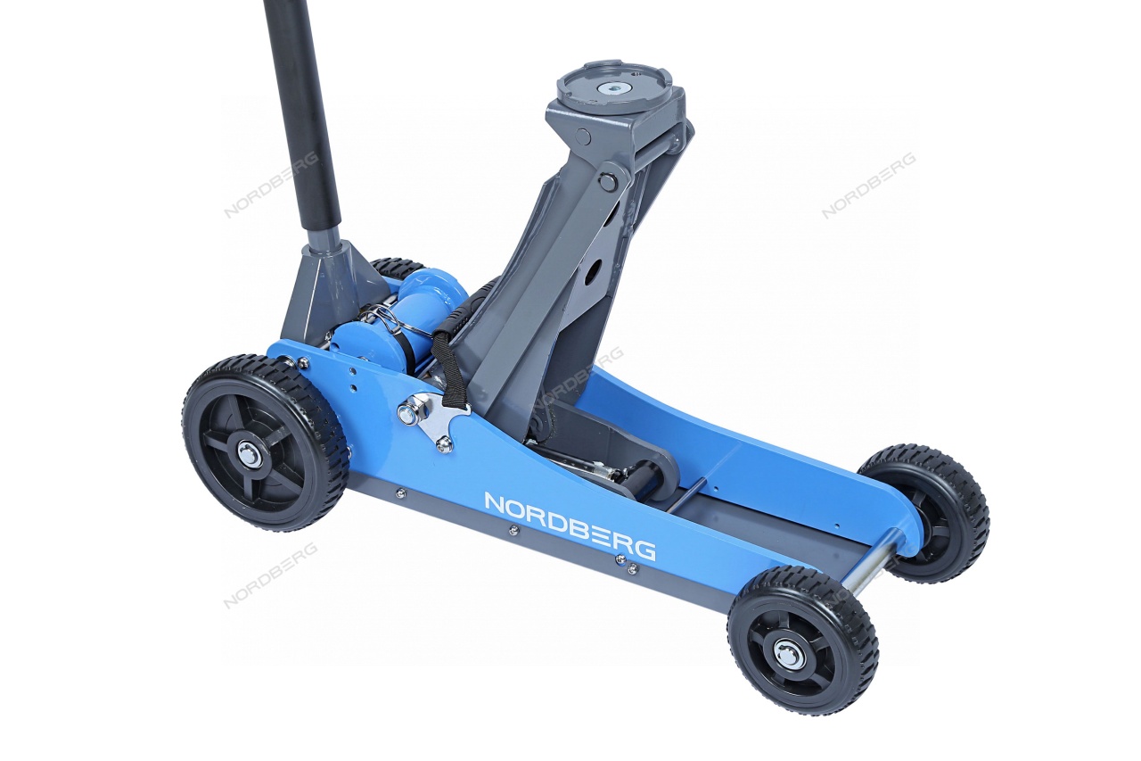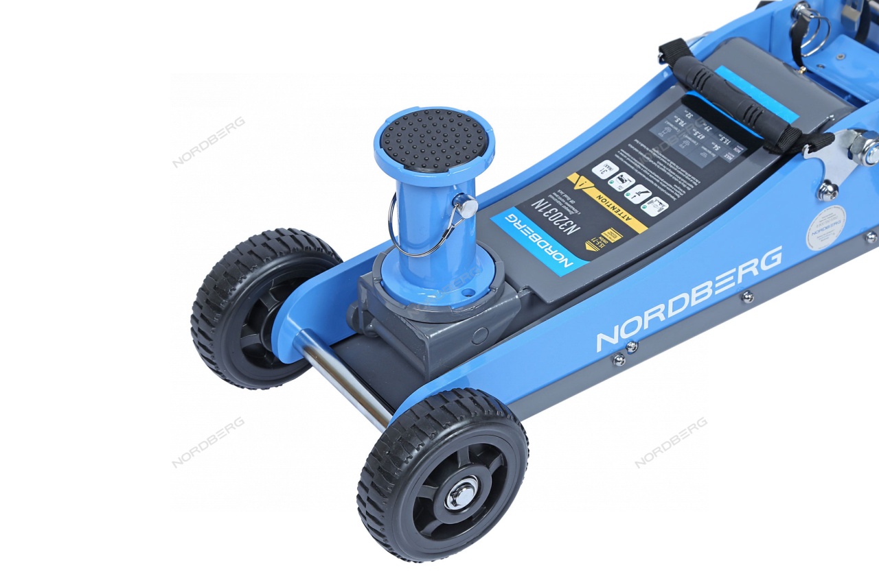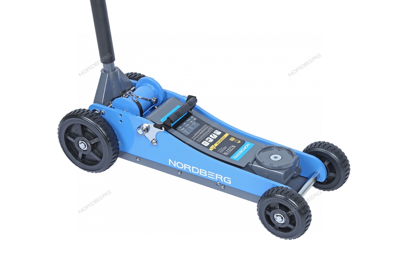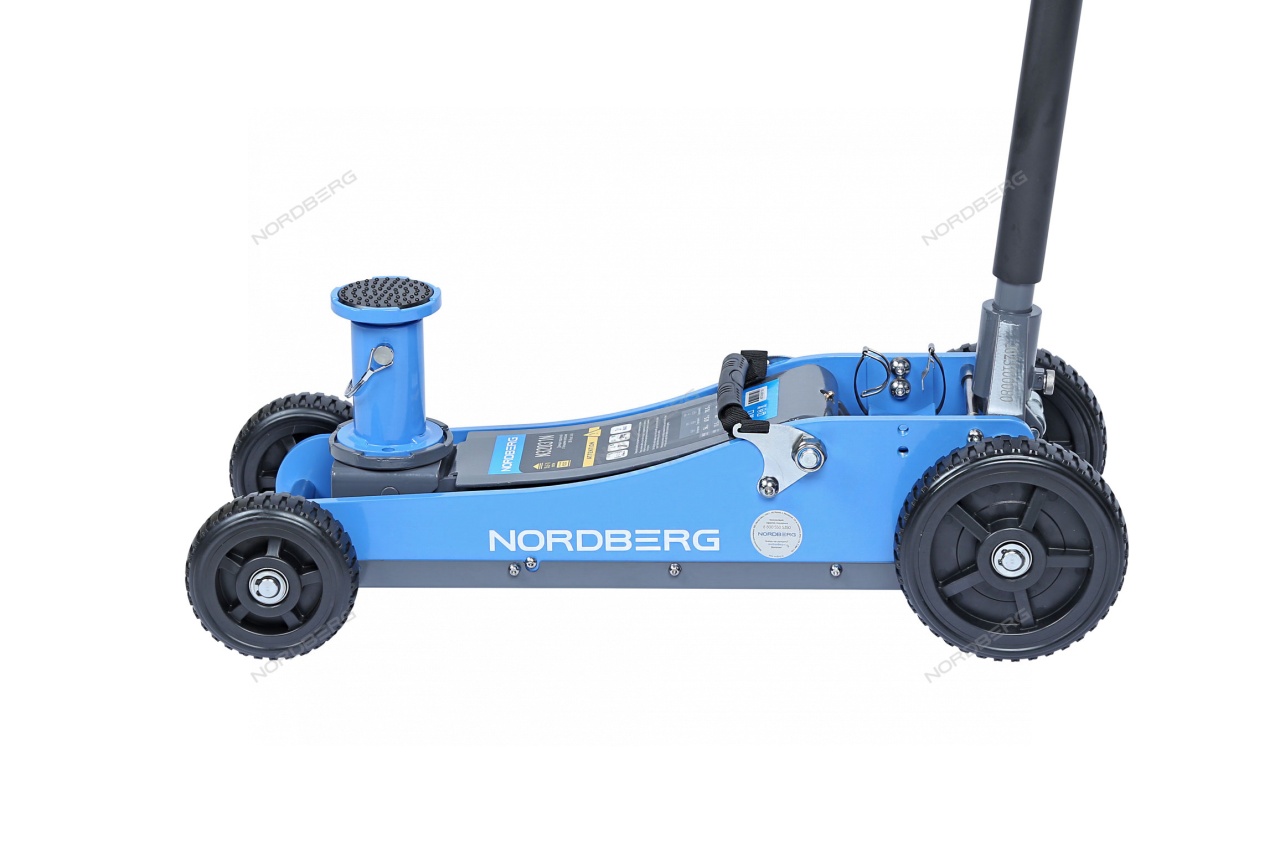Домкрат подкатной NORDBERG N32031N с большими колесами упростит процесс ремонта и обслуживания автомобиля.