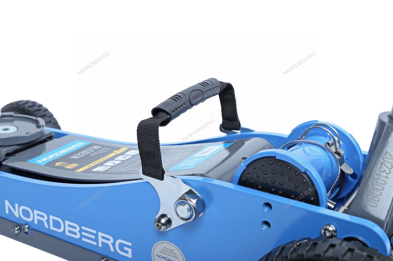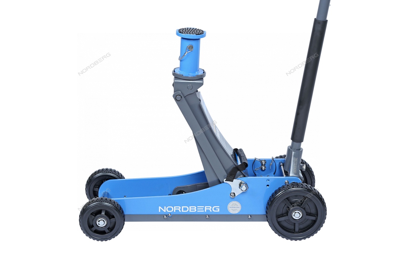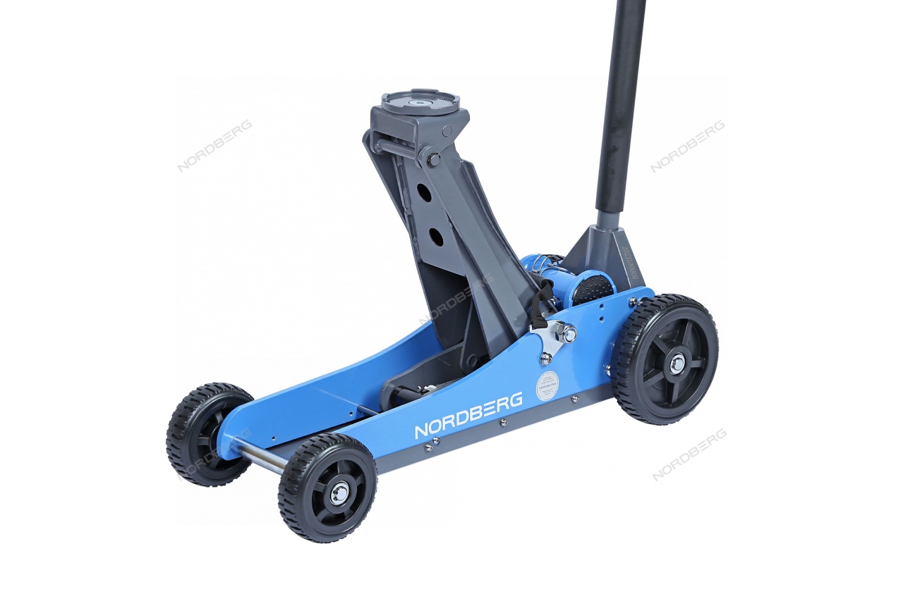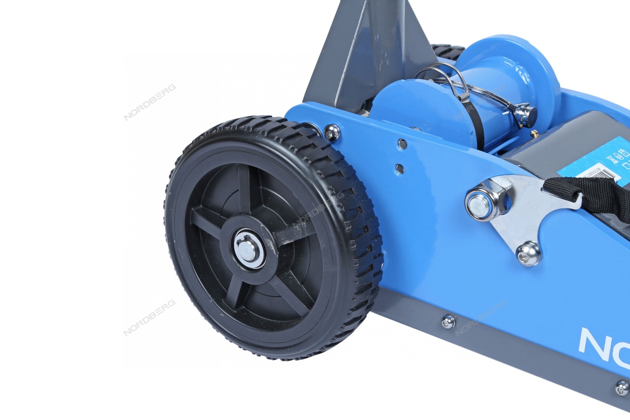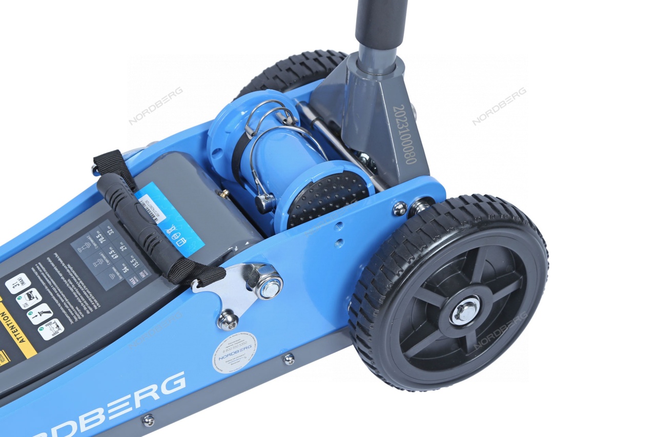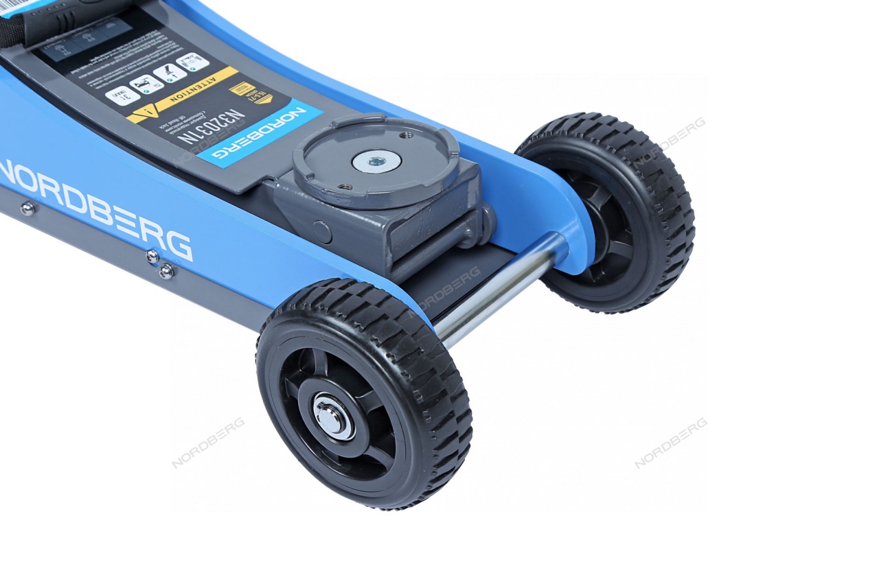 Домкрат подкатной NORDBERG N32031N с большими колесами упростит процесс ремонта и обслуживания автомобиля.