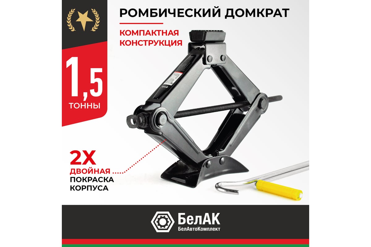 Домкрат ромбический 1.5 тонны БелАК БАК.00058 представляет собой простой домкрат с наиболее надежной конструкцией, исключающей поршни и гидравлические системы. Винтовой ромбический домкрат управляется при помощи поворотной рукоятки. Для оптимальной работы запрещается превышать допустимую нагрузку. Благодаря небольшой высоте подхвата инструмент является универсальным при работе с автомобилями различных классов. Небольшие габариты изделия позволяют всегда держать домкрат под рукой.