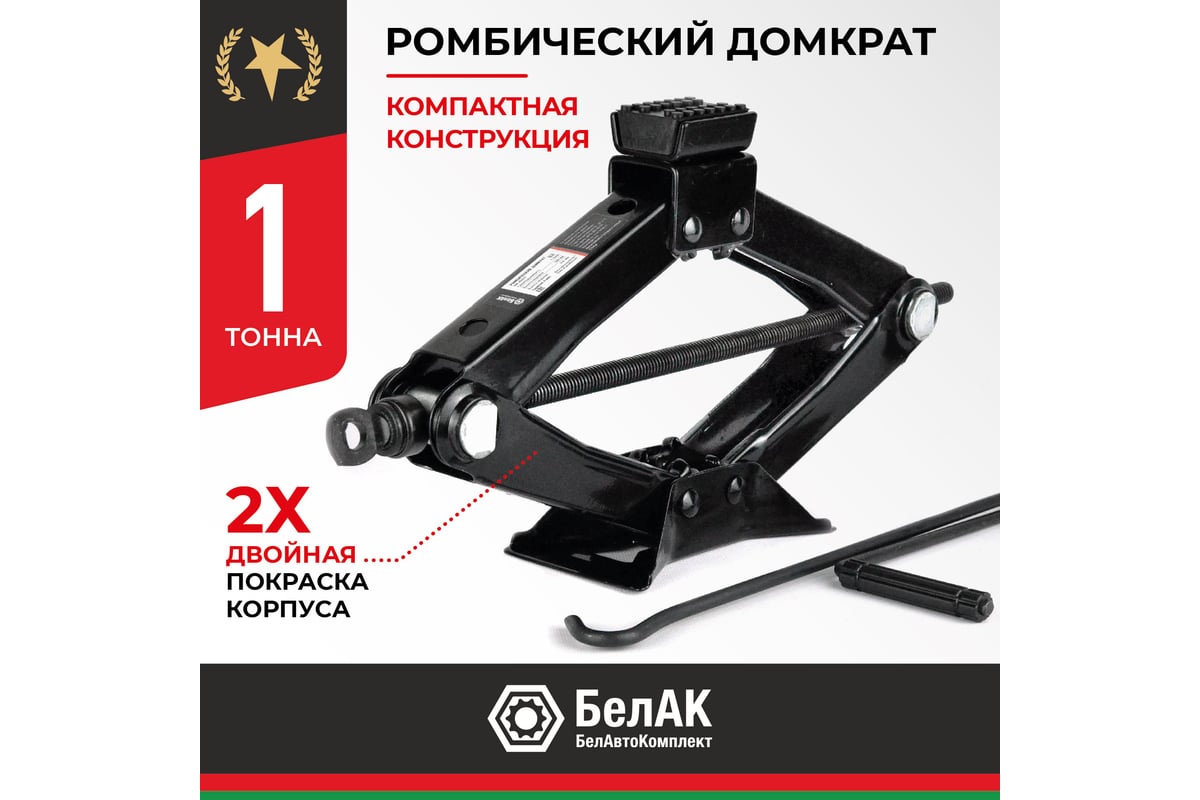 Домкрат ромбический 1.0 тонна БелАК БАК.00057 представляет собой простой домкрат с наиболее надежной конструкцией, исключающей поршни и гидравлические системы. Винтовой ромбический домкрат управляется при помощи поворотной рукоятки. Для оптимальной работы запрещается превышать допустимую нагрузку. Малая высота подхвата допускает успешную работу с автомобилями с небольшим клиренсом. Инструмент можно приобрести для собственного гаража или автосервиса.