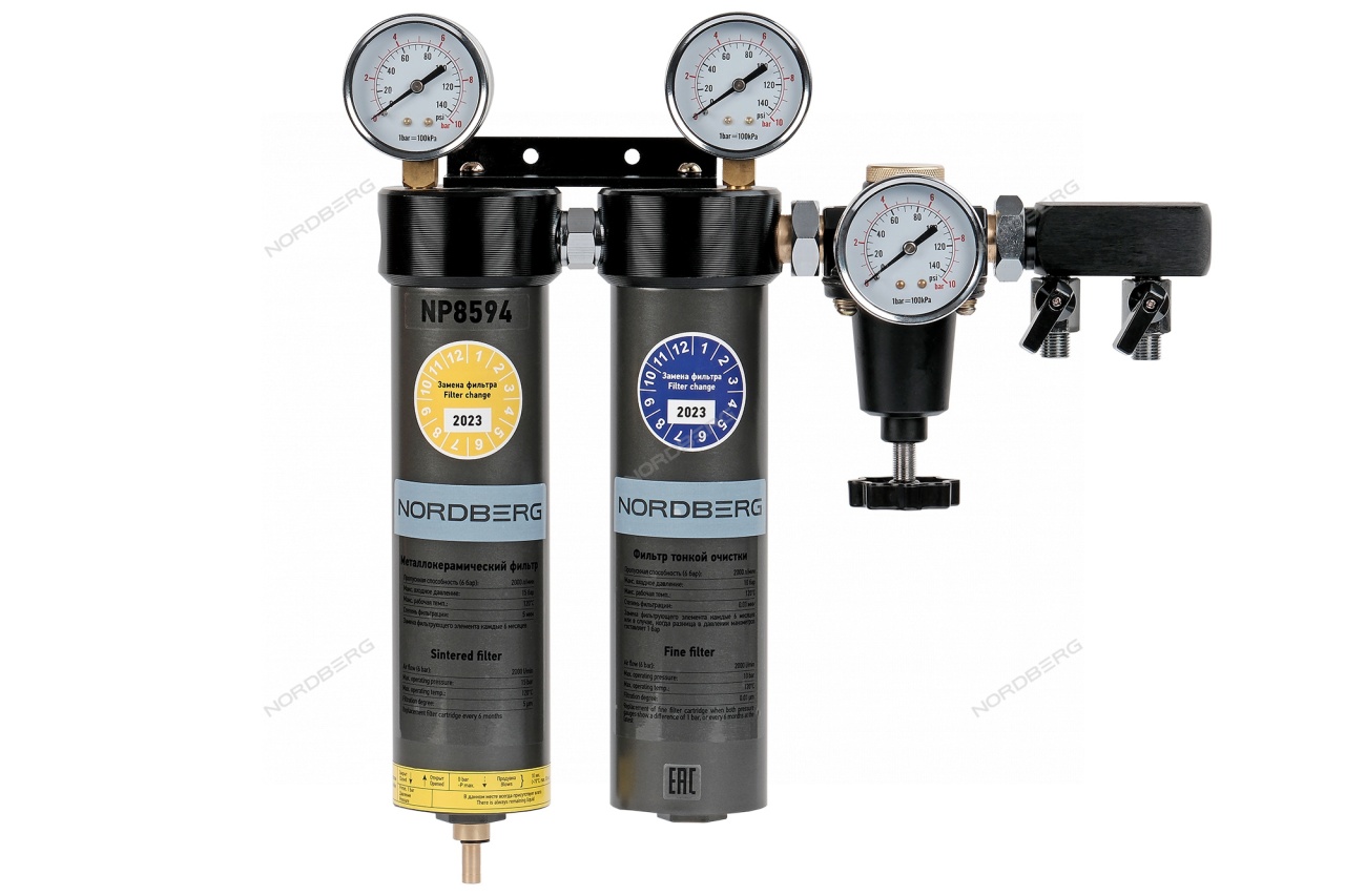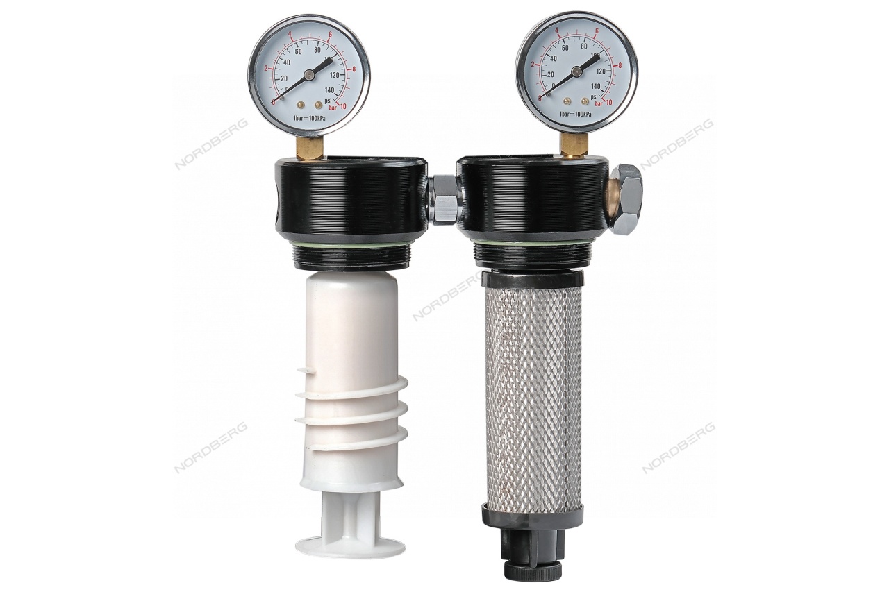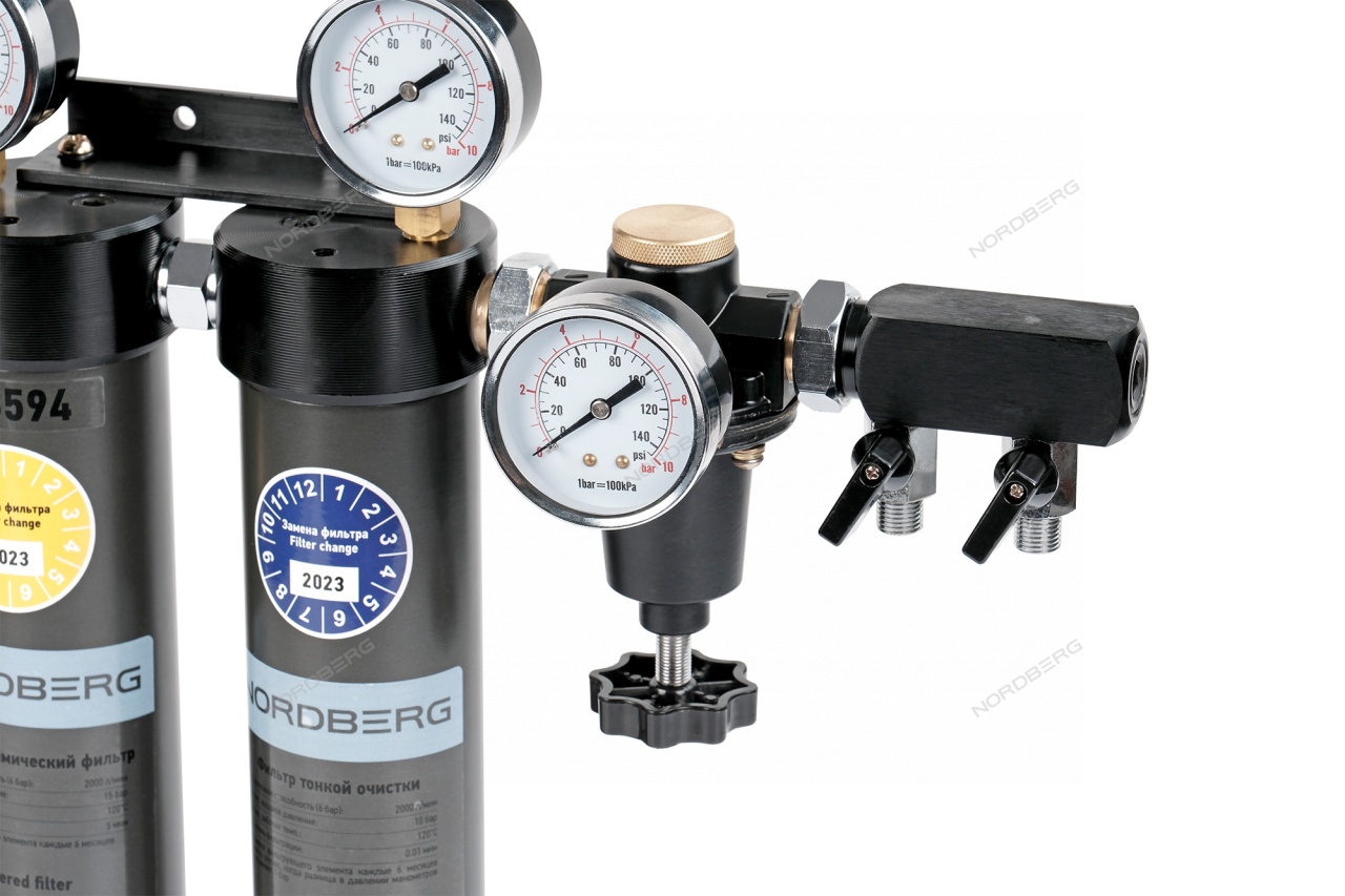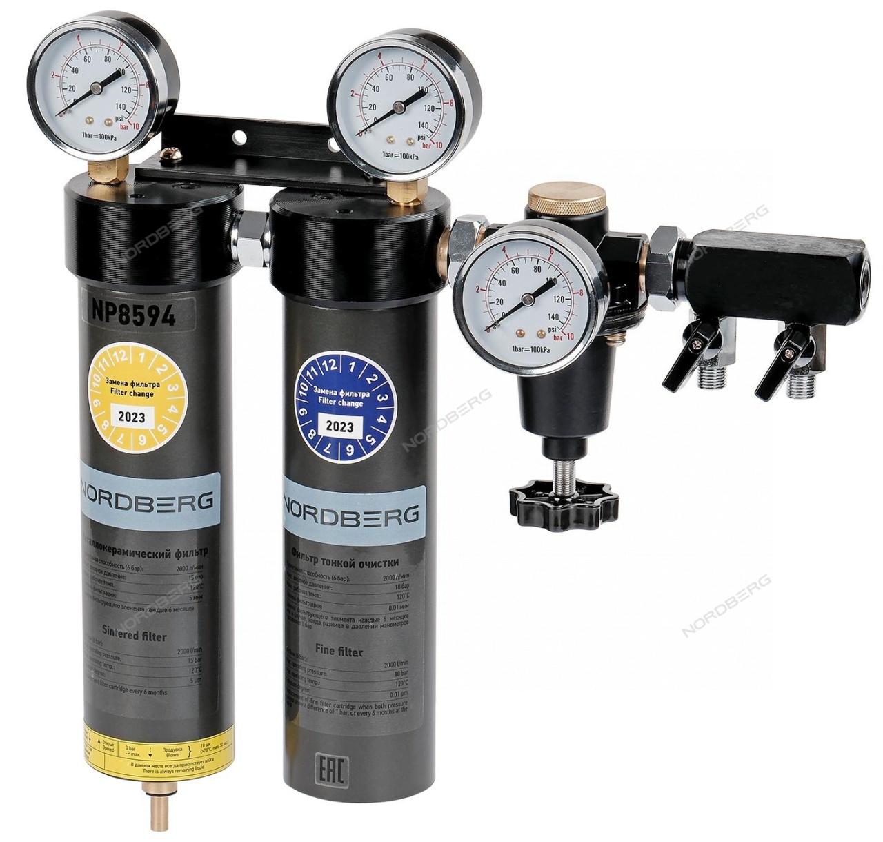 Двухступенчатая фильтр-группа NORDBERG NP8594 подходит для краскопультов с манометрами и регулятором давления предназначена для окрасочных камер и зон подготовки к окраске.