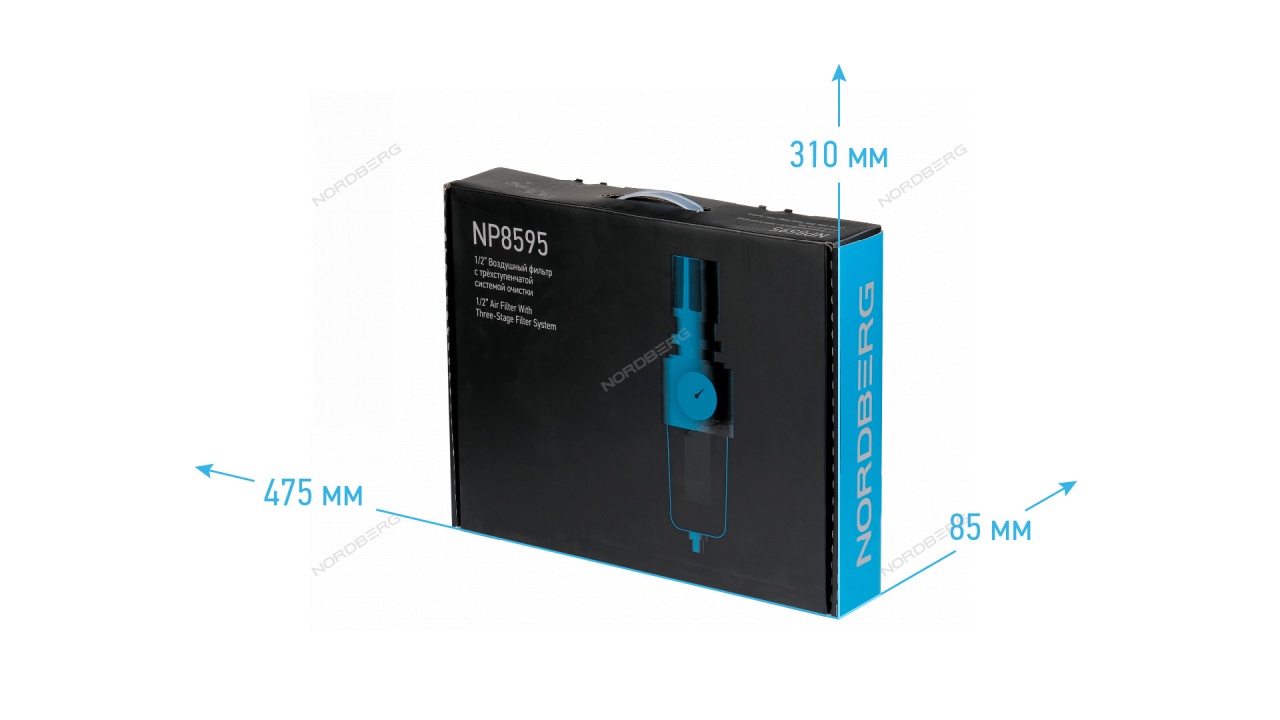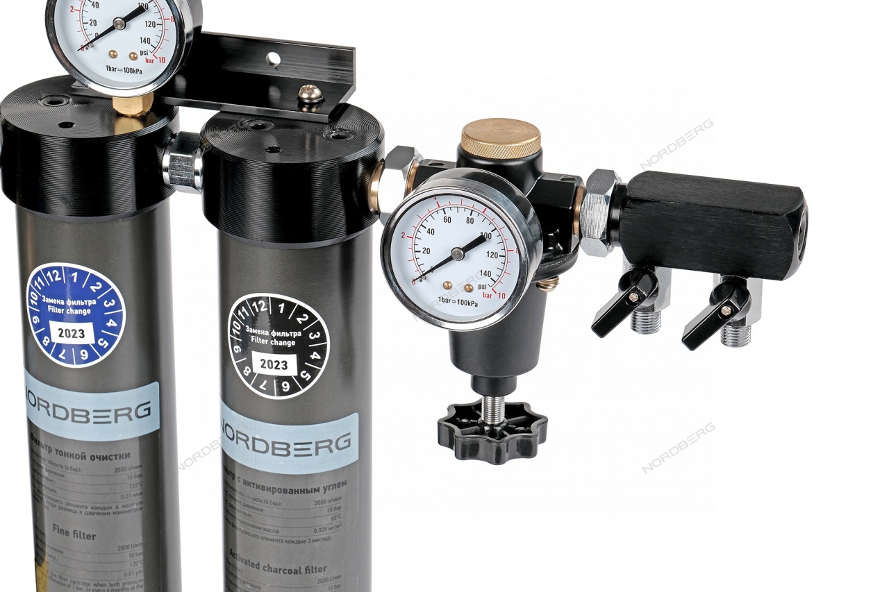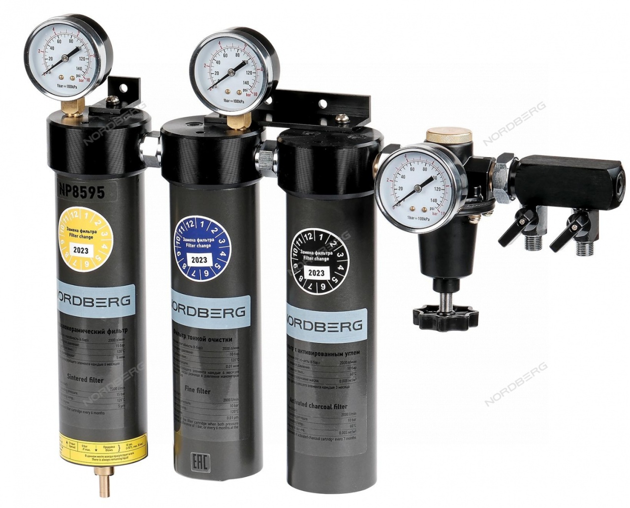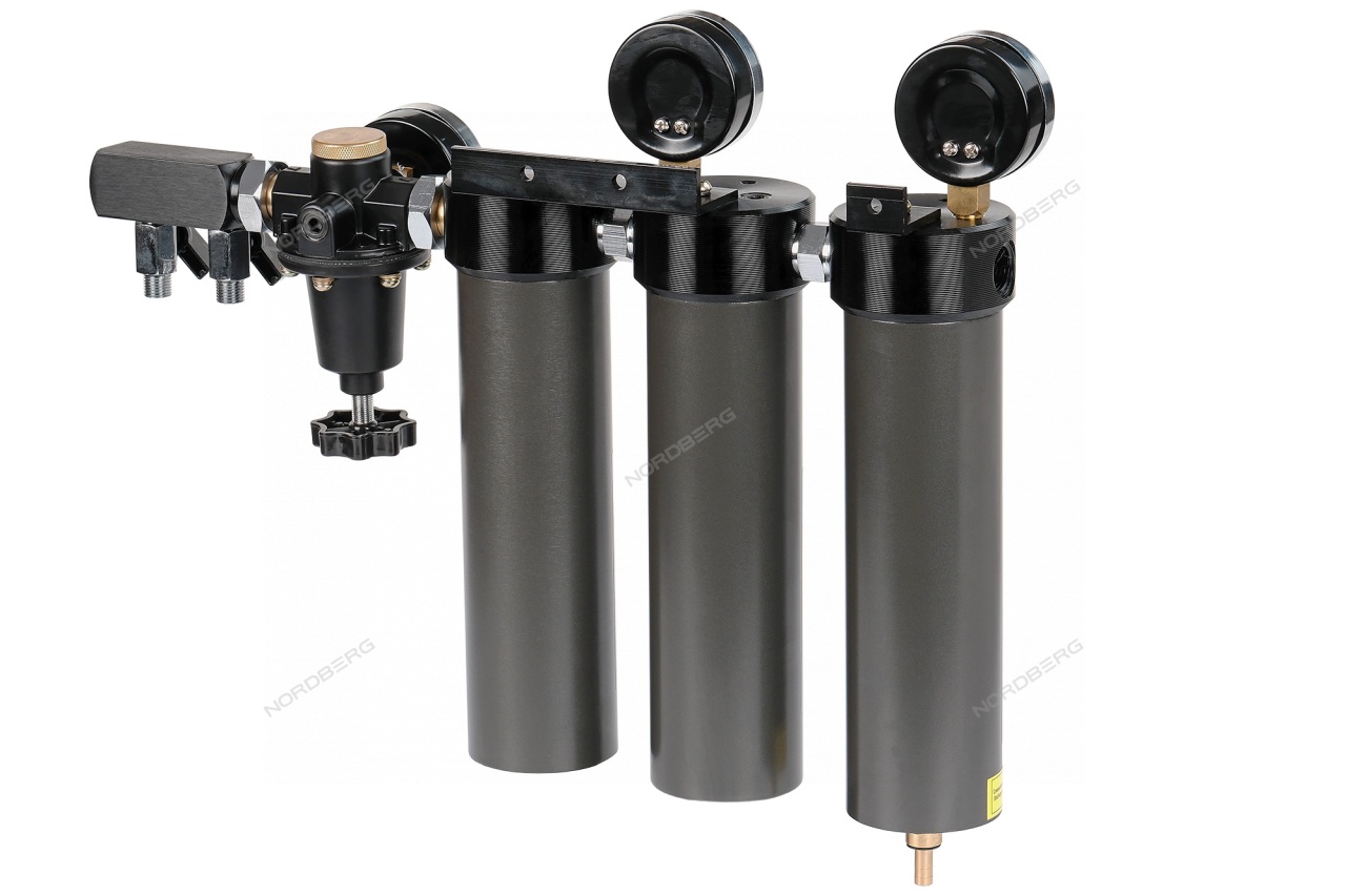 Трехступенчатая фильтр-группа NORDBERG NP8595 подходит для краскопультов с манометрами и регулятором давления предназначена для окрасочных камер и зон подготовки к окраске.