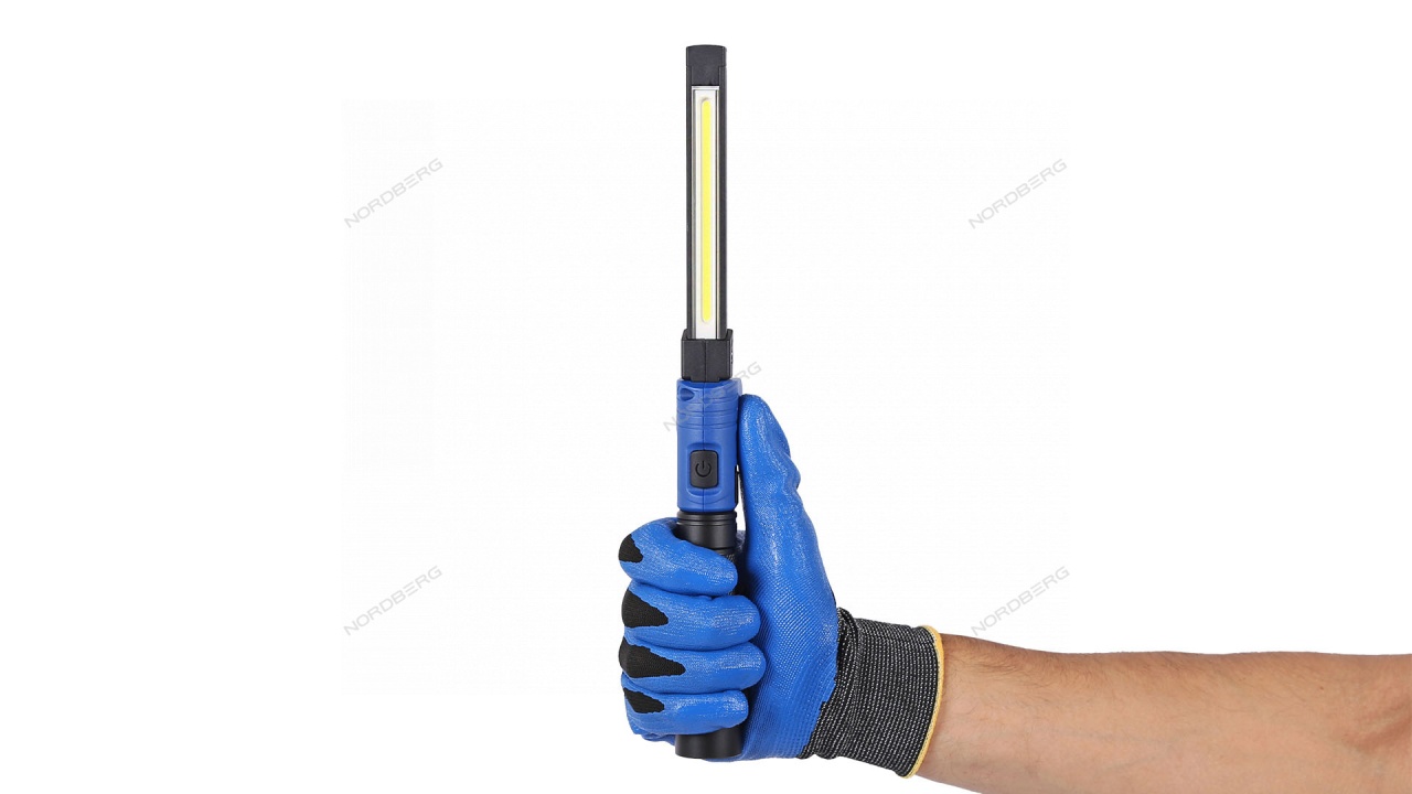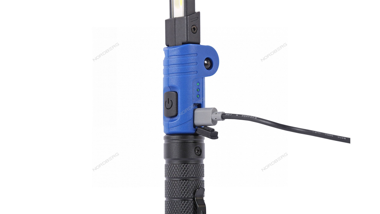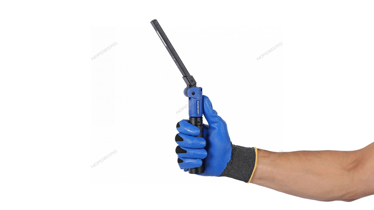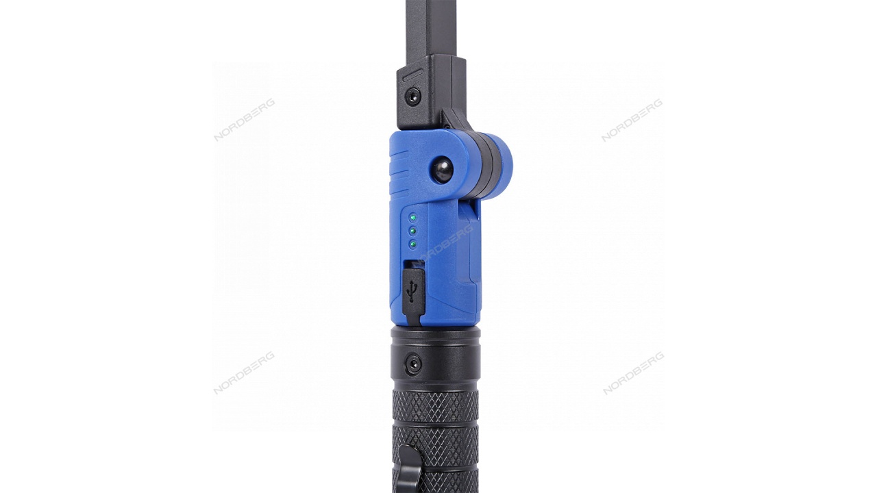 Складной светодиодный аккумуляторный фонарь NORDBERG 1918 – осветительный прибор для профессионального использования в автосервисах и СТО.