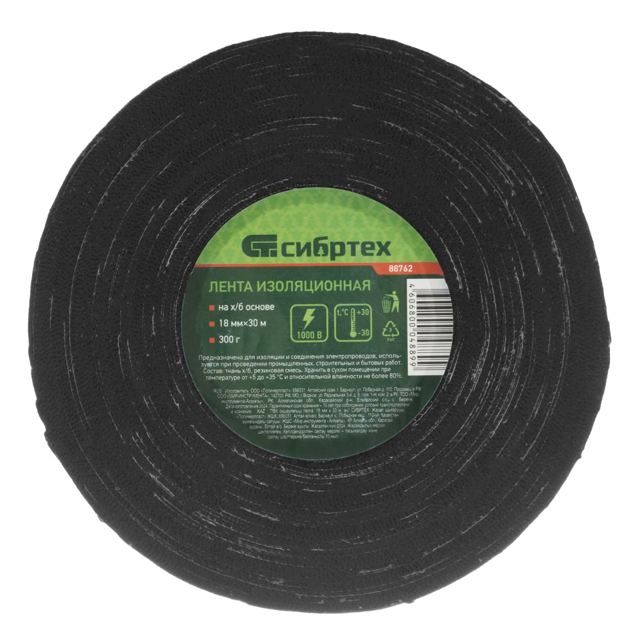 Изолента на ХБ-основе Сибртех 88762 размером 18 мм x 30 м и весом 300 г используется для соединения, жгутирования, защиты и изоляции проводов. Выдерживает рабочее напряжение до 1000 В и будет полезна при проведении электромонтажных работ.