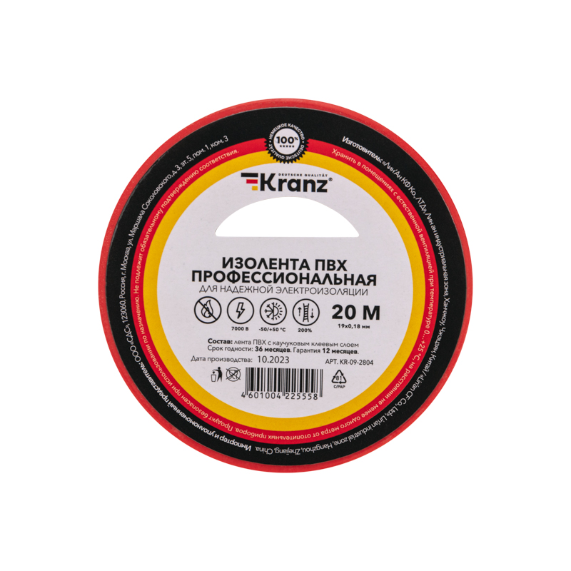 Профессиональная ПВХ-изолента премиум бренда KRANZ KR-09-2804 используется для электрической изоляции, цветной маркировки, соединения, защиты от внешних факторов и герметизации кабелей, проводов и шнуров. Гарантирует надежное покрытие и защищает соединения от влаги, пыли, грязи, механических повреждений и перепадов температуры. Широко применяется не только в профессиональной сфере, но и в быту.