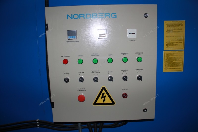 Уникальная система безопасности работы окрасочно-сушильных камер Nordberg собранная на высококлассном европейском оборудовании позволяет автоматически отключать нагревательный блок при достижении в камере заданной температуры. Предохранительный дверной пневмоклапан предотвращает возможность деформации стен избыточным давлением. Специальный пред- и поствентиляционный таймер обеспечивает вытяжку летучих веществ после каждого цикла сушки для надежной пожаро- и взрывобезопасности. Все окна и светильники сделаны из взврывобезопасного стекла. Освещение при помощи люминесцентных ламп обеспечивает такой световой поток, спектр которого наиболее приближен к свету полуденного солнца.