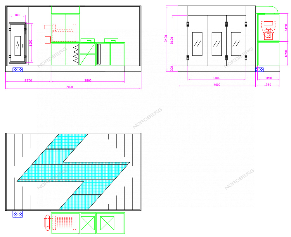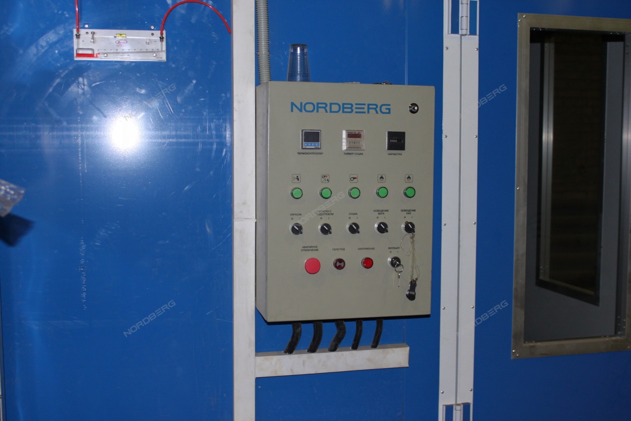 Окрасочно-сушильная камера (ОСК) NORDBERG STANDART предназначена для окраски легковых автомобилей целиком или частично. Камера представляет собой кабину на металлическом основании с вентиляторной группой для нагнетания избыточного давления воздуха внутри кабины и для обеспечения устойчивого воздухопотока.