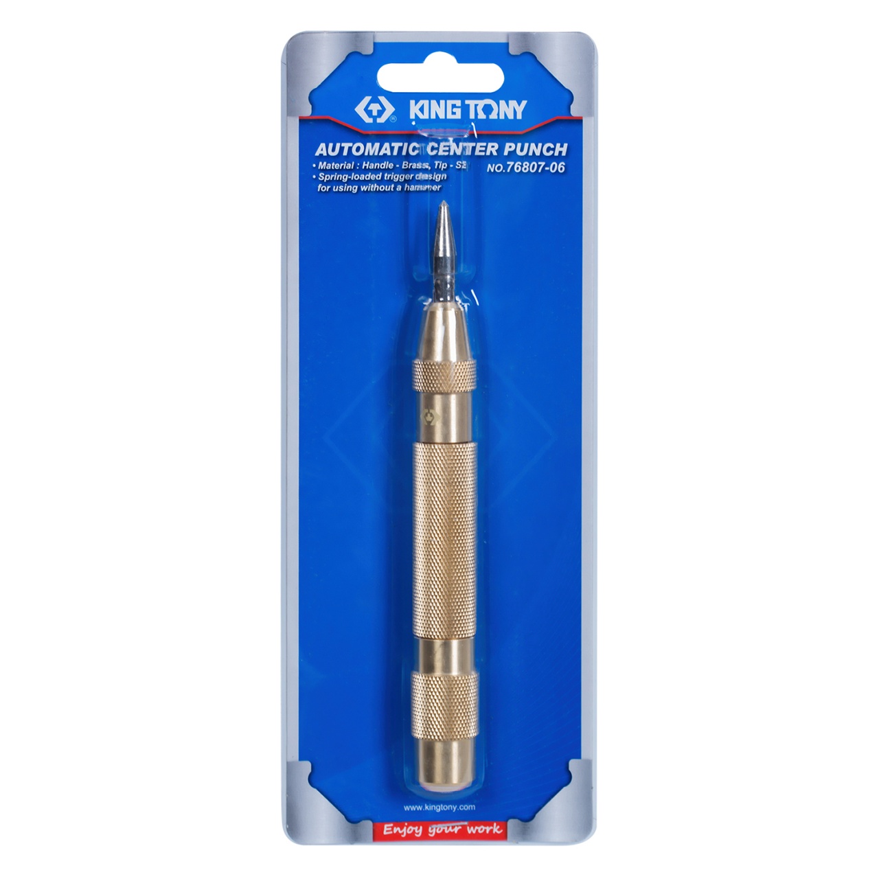 Кернер 1,7x155 мм, автоматический KING TONY 76807-06. Предназначен для разметочных работ, к примеру, нанесение меток для центровки сверла. Особенность кернера – автоматический механизм, позволяющий наносить метки без применения молотка. Насечка на корпусе кернера помогает надёжно удерживать инструмент во время работы.