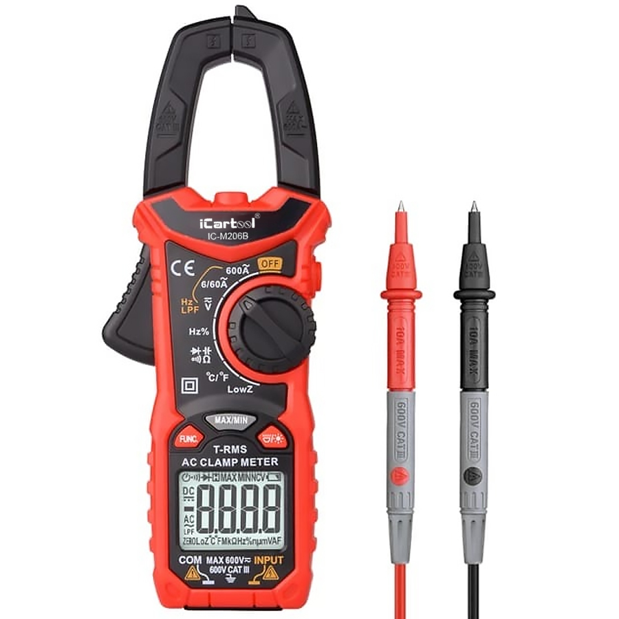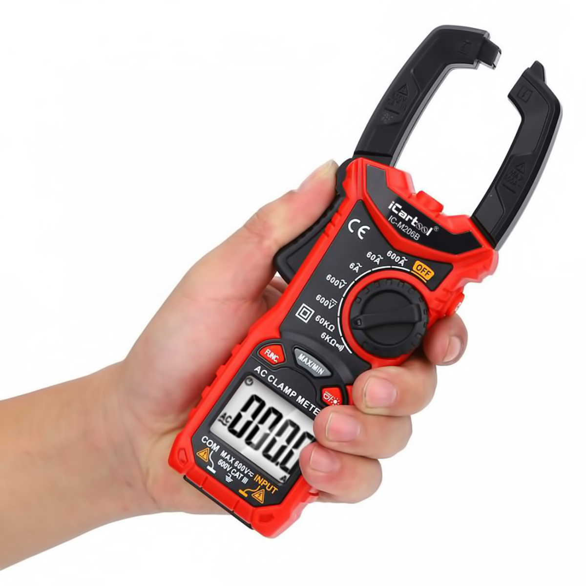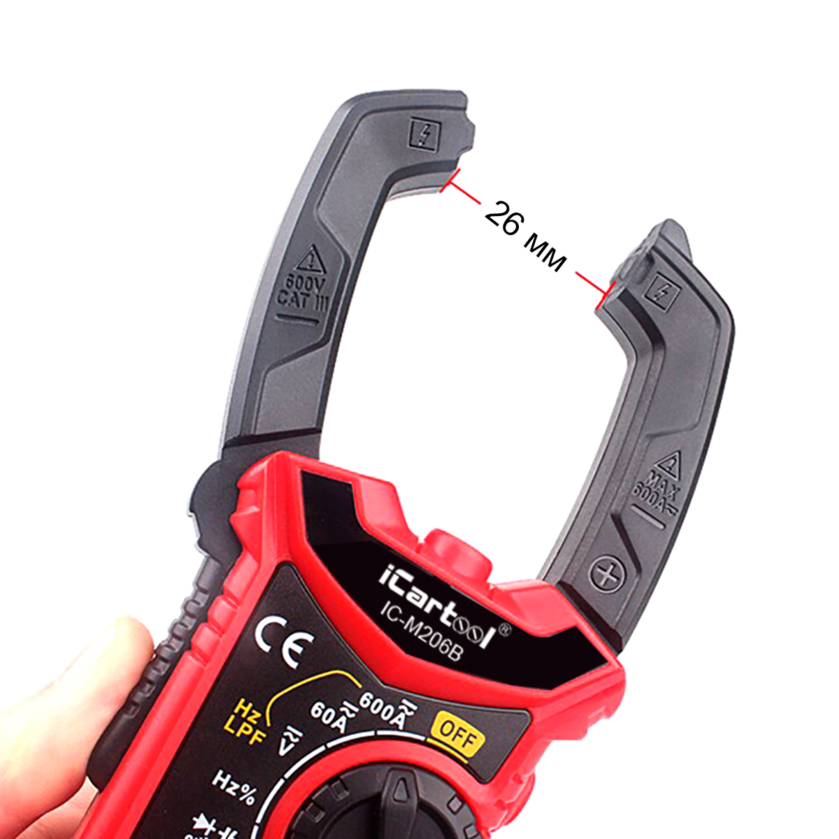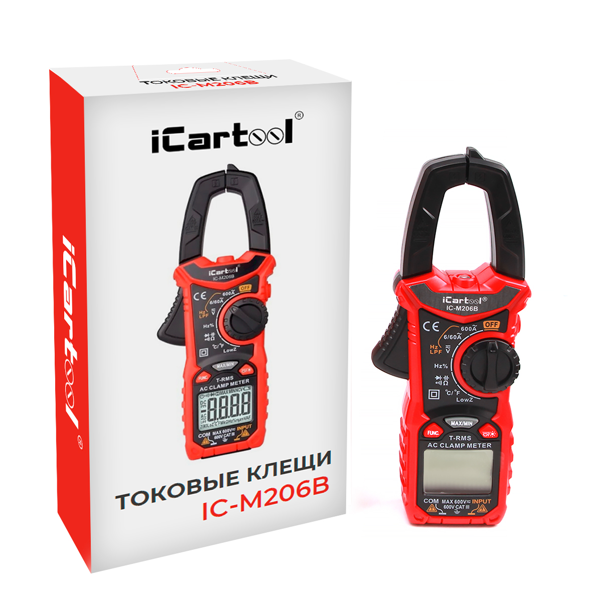 IC-M206B — высокочувствительные цифровые токоизмерительные клещи с функцией мультиметра. Устройство имеет широкий функционал: измерение переменного тока, сопротивления, емкости, постоянного/переменного напряжения, даже при низком сопротивлении ( функция LowZ) и многое другое. С помощью этих клещей вы сможете бесконтактно определить напряжение проверить целостность цепи. Прибор демонстрирует максимально точные показания благодаря измерению TrueRMS.