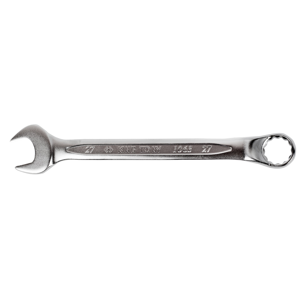 Ключи комбинированные серии 1063 – новинка в ассортименте марки KingTony. Особенностью ключей этой серии является особый изгиб накидной части, который равен 45° относительно оси крепёжного соединения или 135° относительно корпуса ключа. В сравнении с серией 1060, накидная часть ключей серии 1063 вынесена и позволяет работать с крепежом в небольших углублениях, а 12-тигранный профиль универсален в применении как к шестигранным, так и двенадцатигранным головкам болтов или гайкам. Специальный изгиб рожковой части ключа в 15° позволяет работать в местах с ограниченным доступом к крепежу. Таким образом ключи серии 1063 сочетают в себе все преимущества комбинированных ключей серии 1060, и удобства накидных ключей серии 1970.
