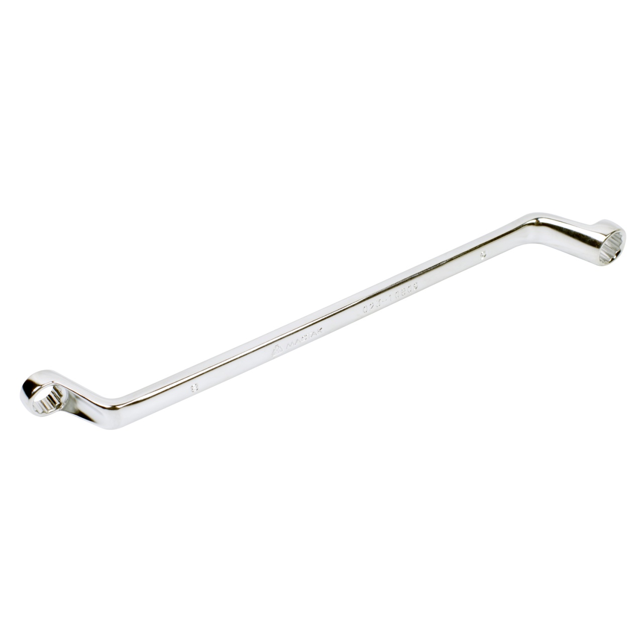 Ключи относятся к накидному типу, двухразмерные, имеют 12-гранный рабочий профиль и специальный изгиб под углом 75°, позволяющий работать с крепежом в углублении или других труднодоступных местах.