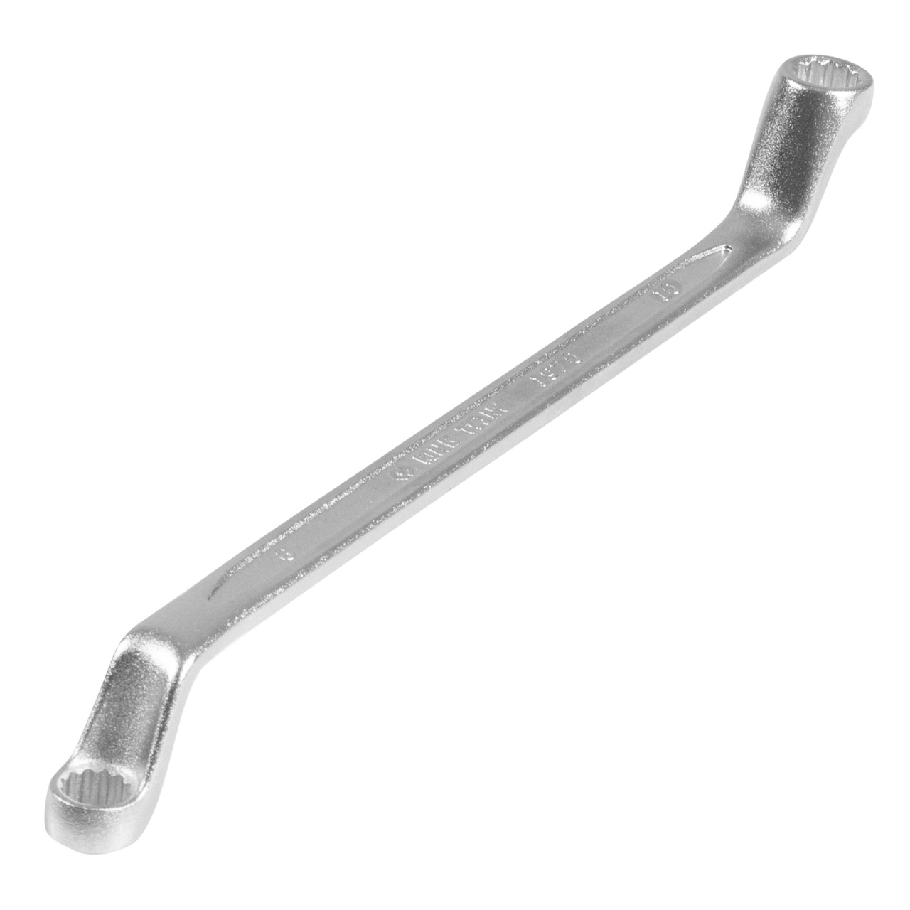Ключи относятся к накидному типу, двухразмерные, имеют 12-гранный рабочий профиль и специальный изгиб под углом 75°, позволяющий работать с крепежом в углублении или других труднодоступных местах.