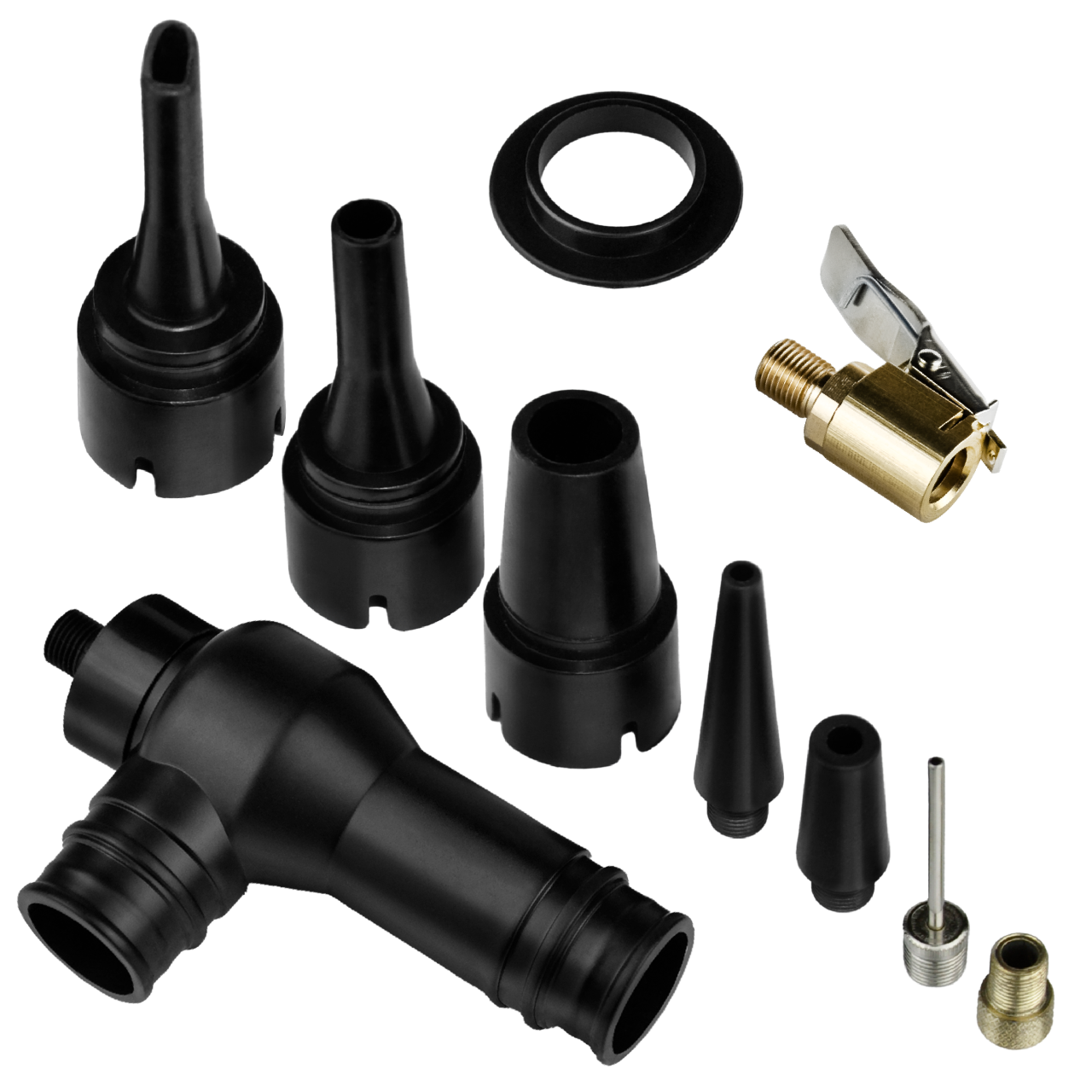 • В комплекте идут различные насадки, что позволяет использовать компрессор для накачки не только автомобильных шин, но и велосипедов, мячей, матрасов, лодок и других надувных изделий.