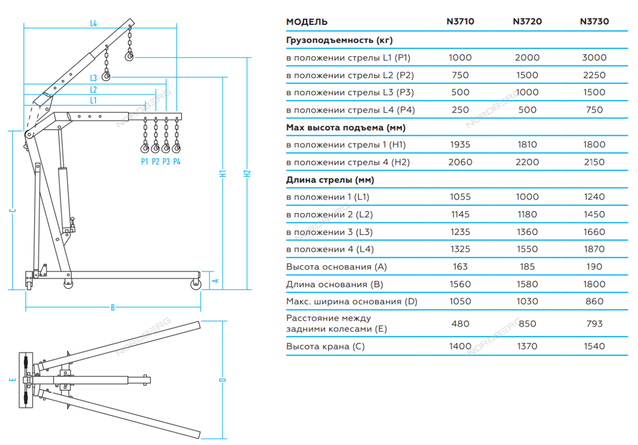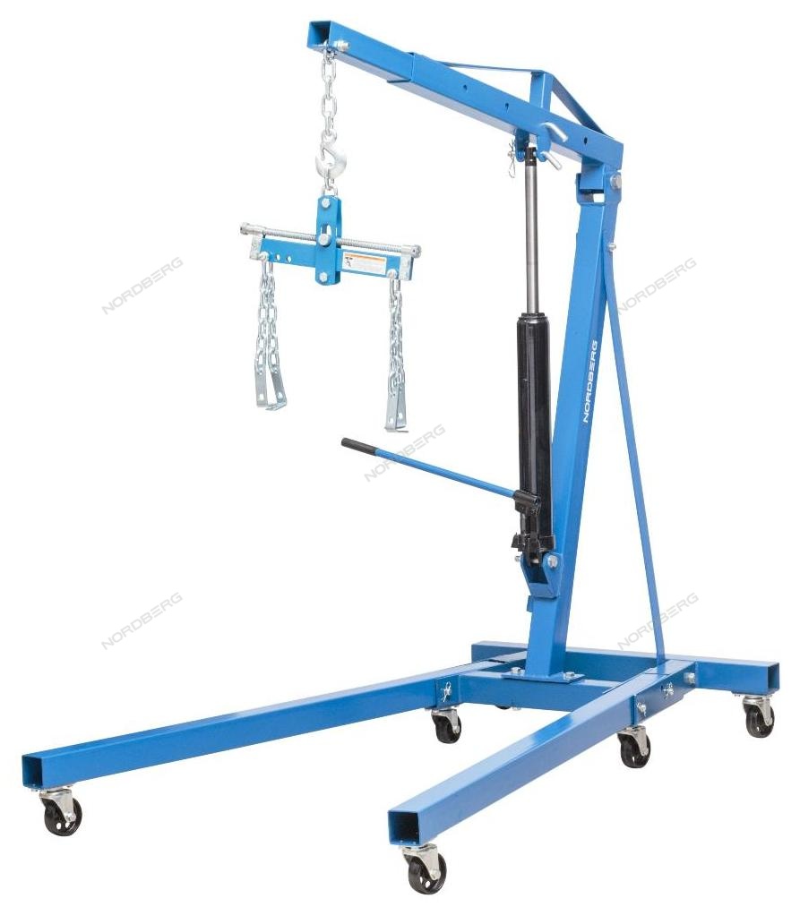 Кран гидравлический 2 т, разборный NORDBERG AUTOMOTIVE N3720. Предназначен для подъёма и транспортировки к месту проведения ремонтных работ габаритных агрегатов и узлов автомобильной и другой техники. Незаменим, к примеру, для подъёма и вывешивания двигателя автомобиля.