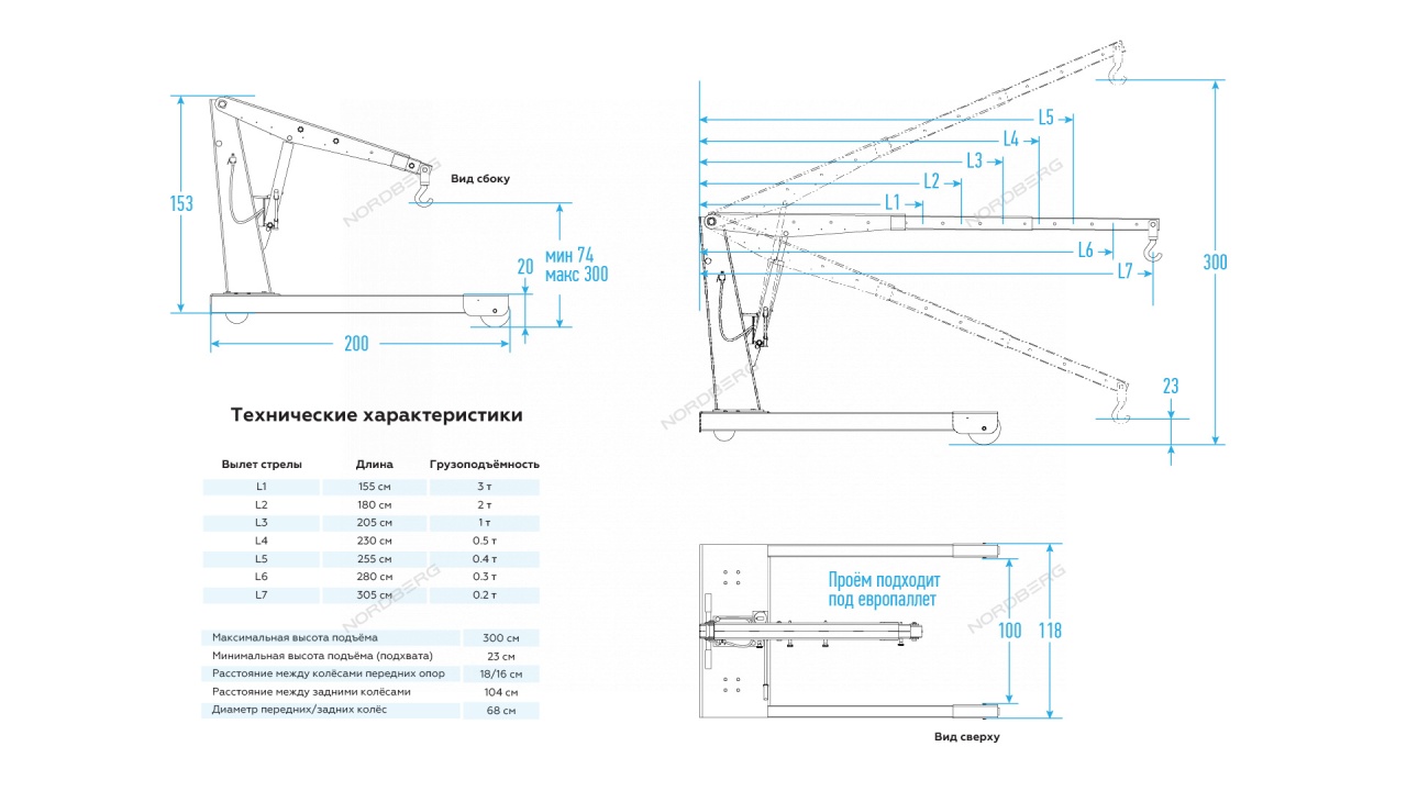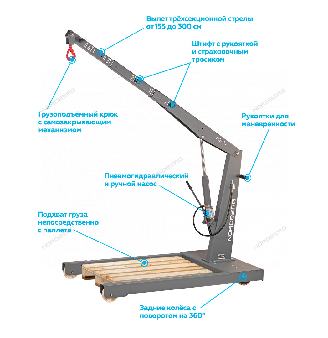 Грузовой гидравлический гуськовый кран NORDBERG N3771 – незаменимое грузоподъемное оборудование для качественного обслуживания легкового и грузового автотранспорта в автосервисах, СТО, гаражах.