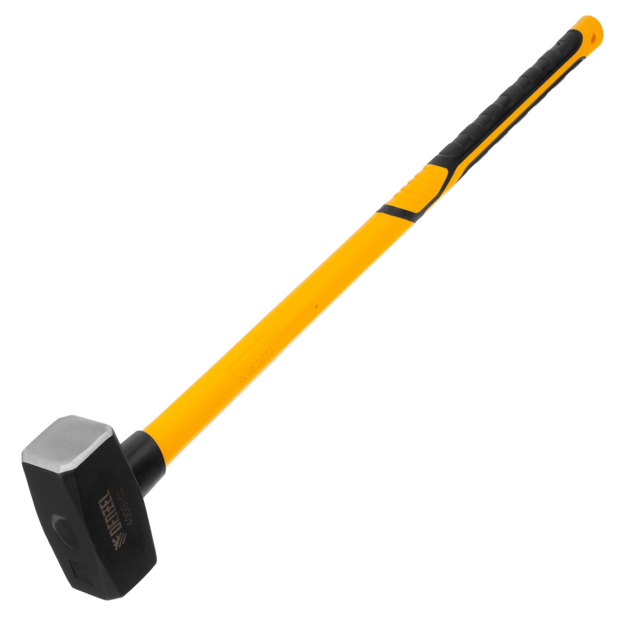 Кованая кувалда Denzel 11023 с бойком весом 4000 г и фибергласовой обрезиненной рукояткой длиной 880 мм, с TPR покрытием, предназначена для проведения демонтажных работ: разрушения кирпичной кладки, камня и бетона, забивания клиньев, кольев, скоб и других тяжелых ударных работ. Удлиненная рукоятка позволяет наносить удары большой силы, а кованый боек отличается прочностью и не подвержен деформациям.