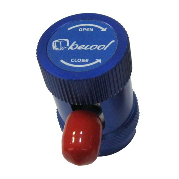 Быстросъемная муфта низкого давления для подсоединения к порту заправки автомобильных кондиционеров, работающих на хладагенте R134a, или малых рефрижераторных установок на R404a, без открытия доступа к системе циркуляции хладагента. Поворот вентиля по часовой стрелке приводит в действие механизм опускания штока-депрессора, который нажимает на золотник и, тем самым, открывает доступ к системе циркуляции хладагента.