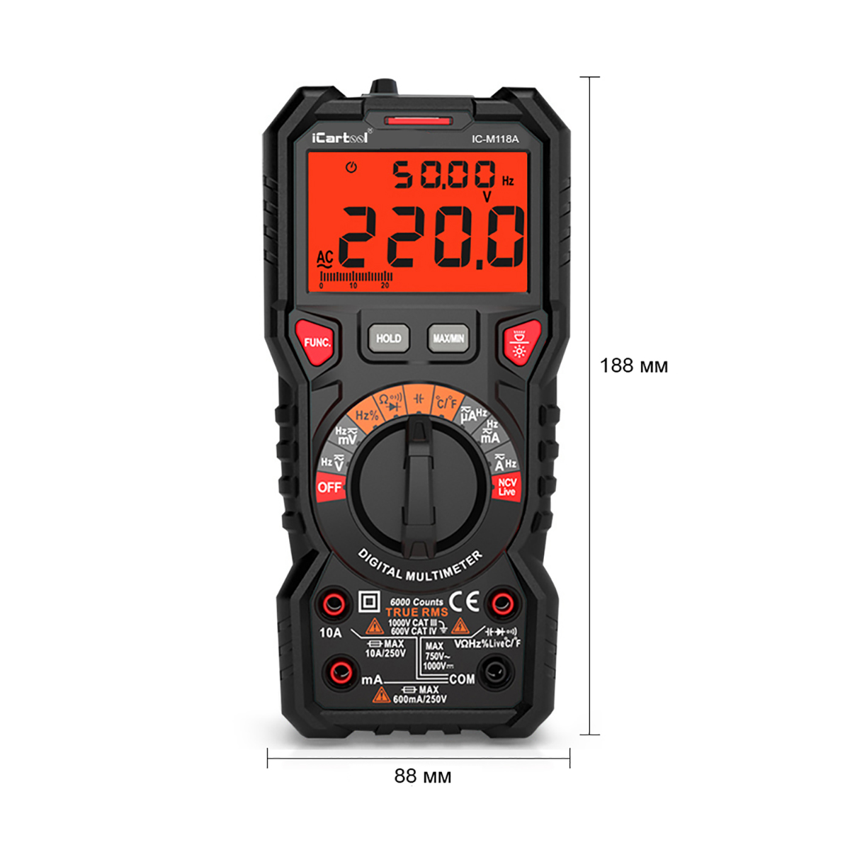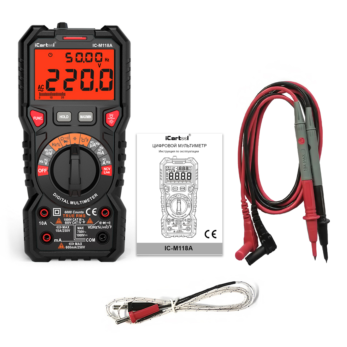 IC-M118A - профессиональный мультиметр с широким функционалом для использования в промышленности или в лабораторных целях. Имеет высокий рейтинг безопасности.