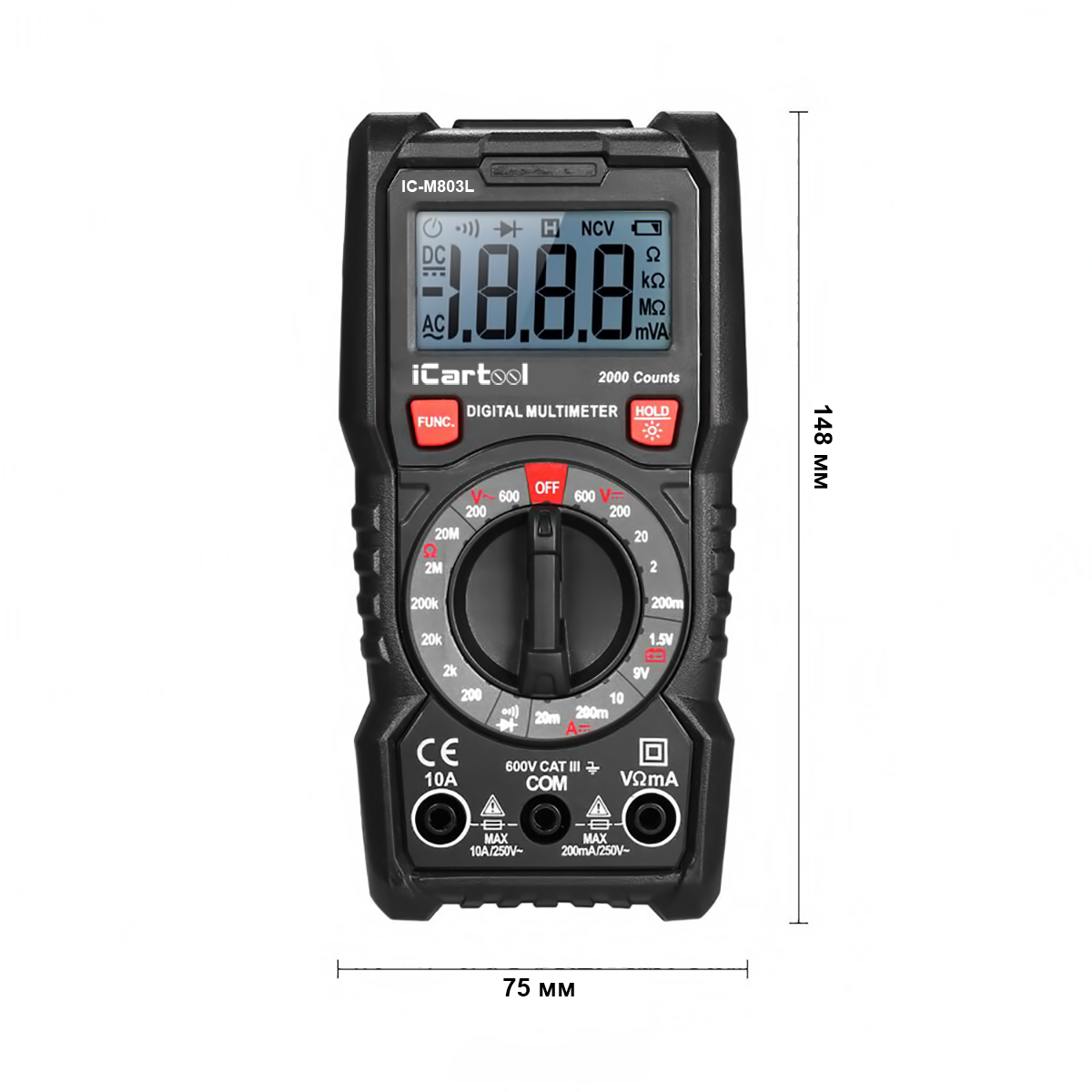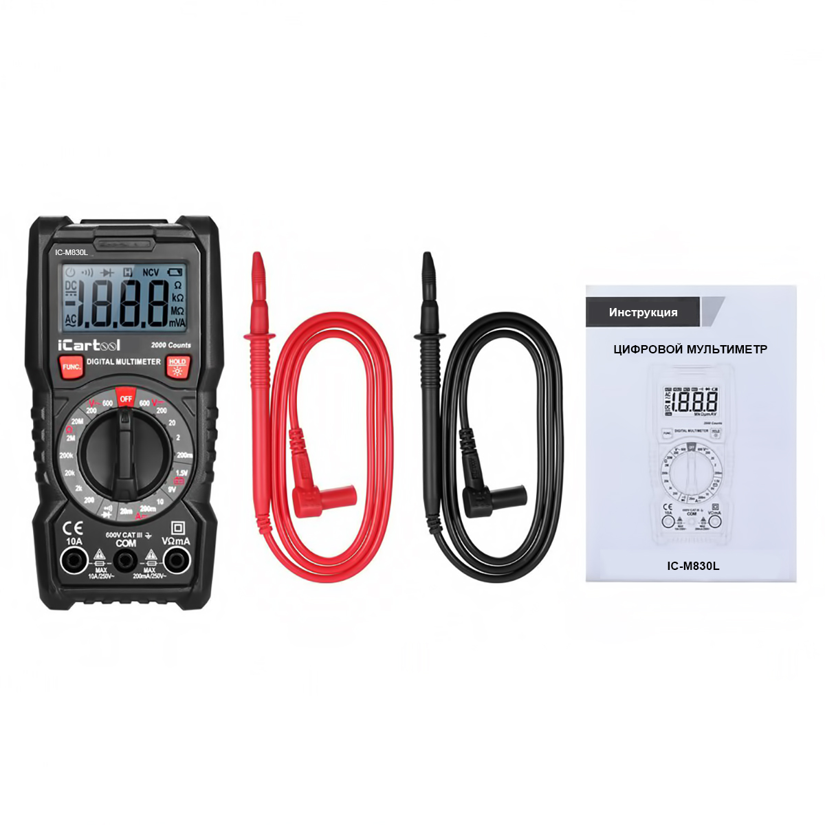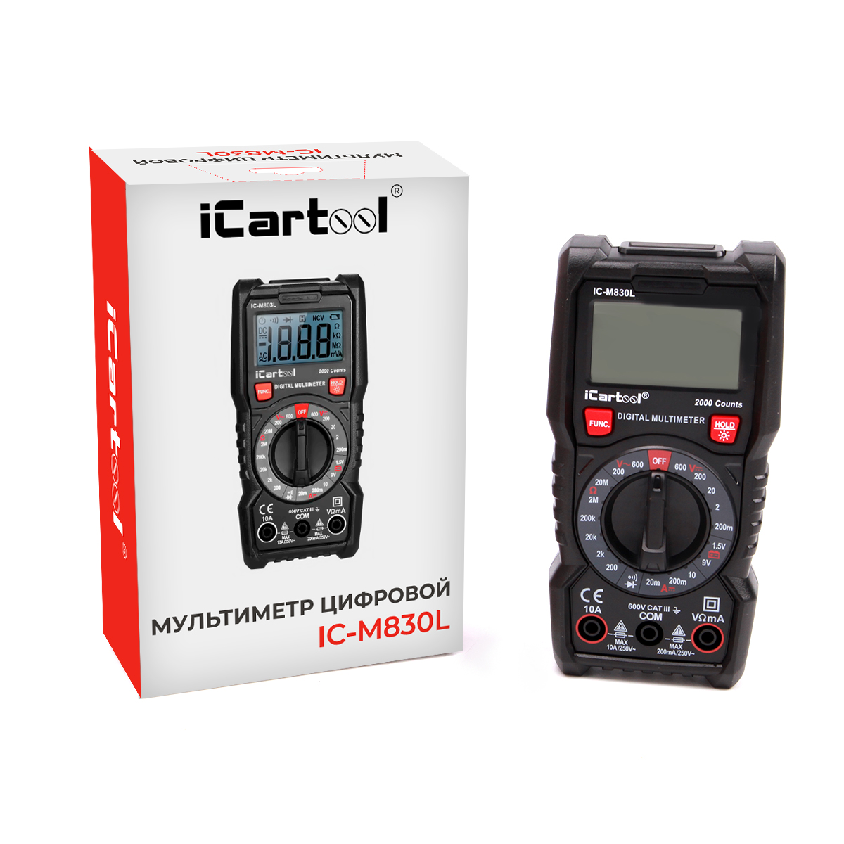 IC-M830L — многофункциональный мультиметр с классическим набором функций. Станет незаменимым помощником на производстве или дома. С помощью тестера вы сможете измерить напряжение постоянного или переменного тока, провести тест диодов, замерить сопротивление и выполнить "прозвонку" цепи.