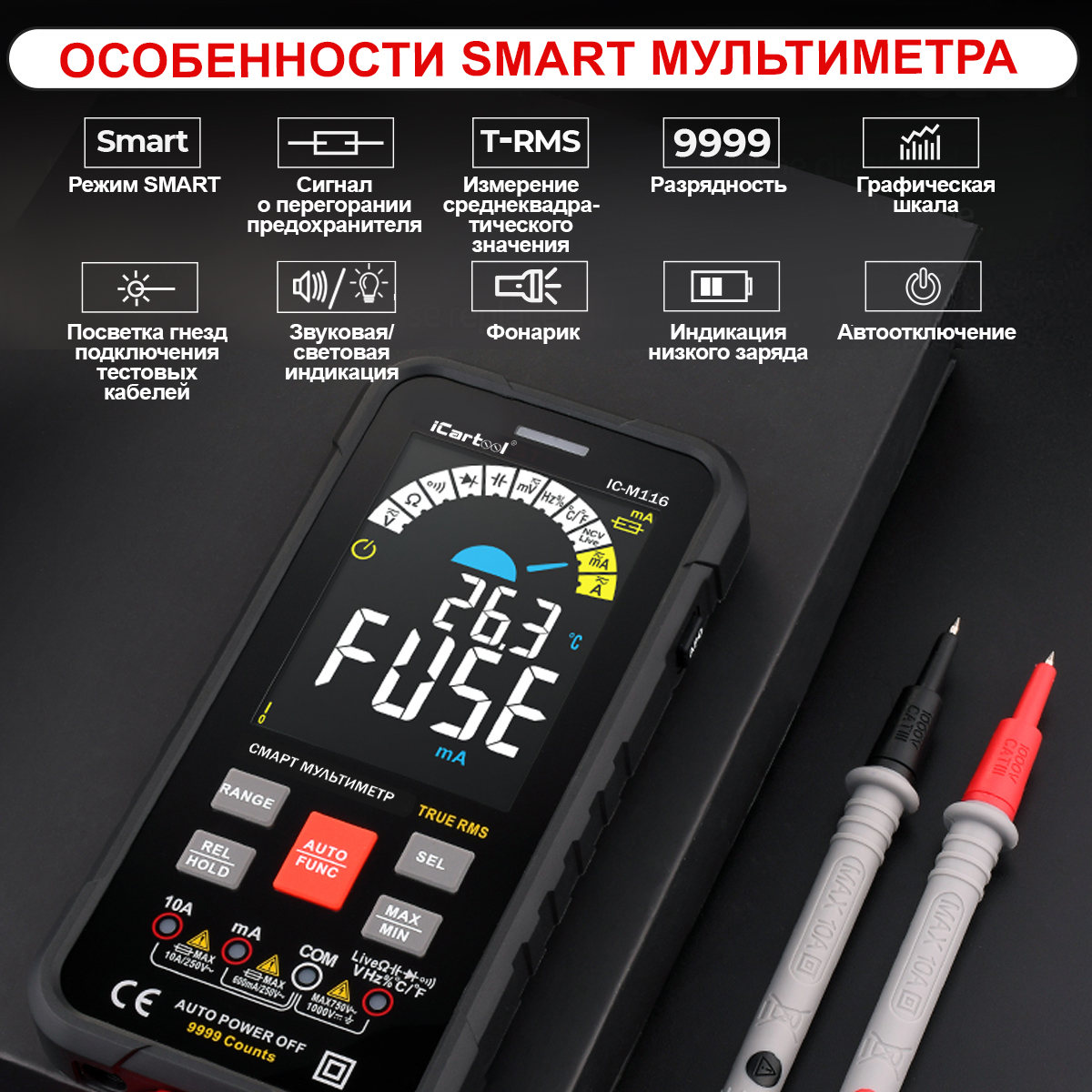 С помощью смарт мультиметра IC-M116 вы сможете: