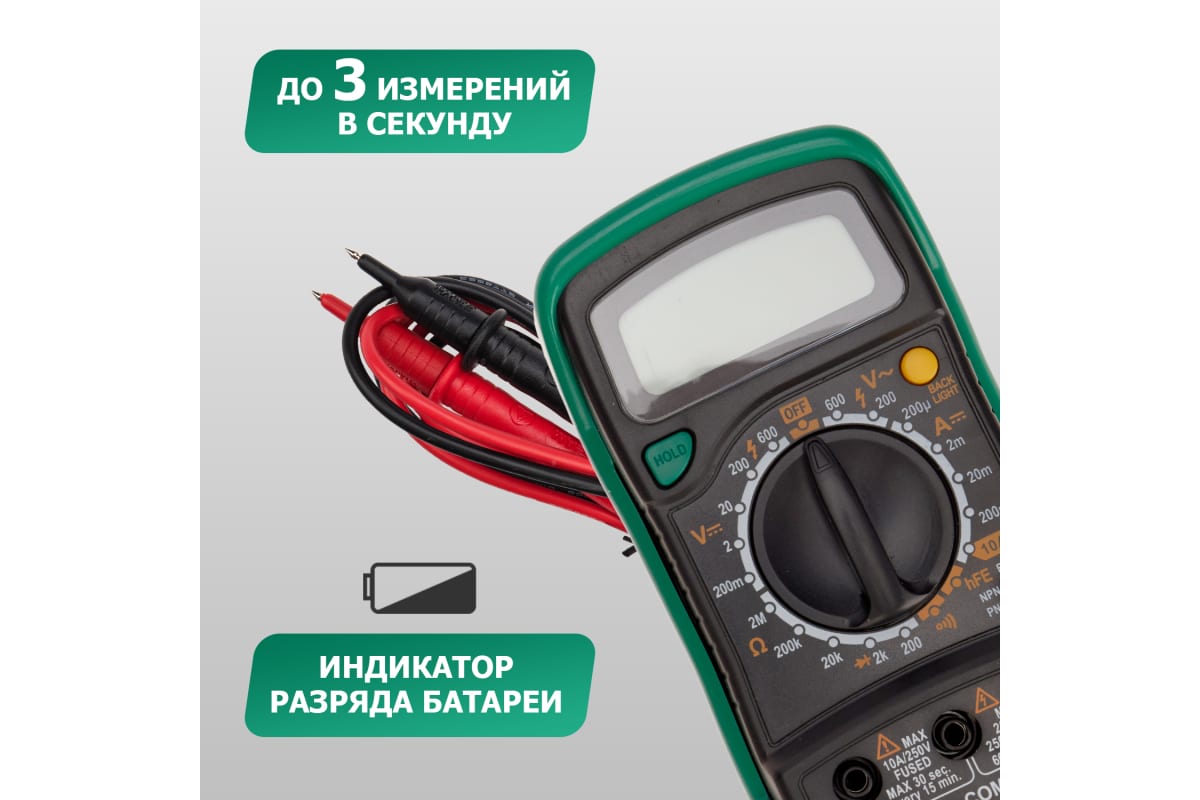 Позволяет производить измерения величин силы постоянного и переменного тока, постоянного и переменного напряжения. сопротивления, коэффициента усиления биполярных транзисторов.