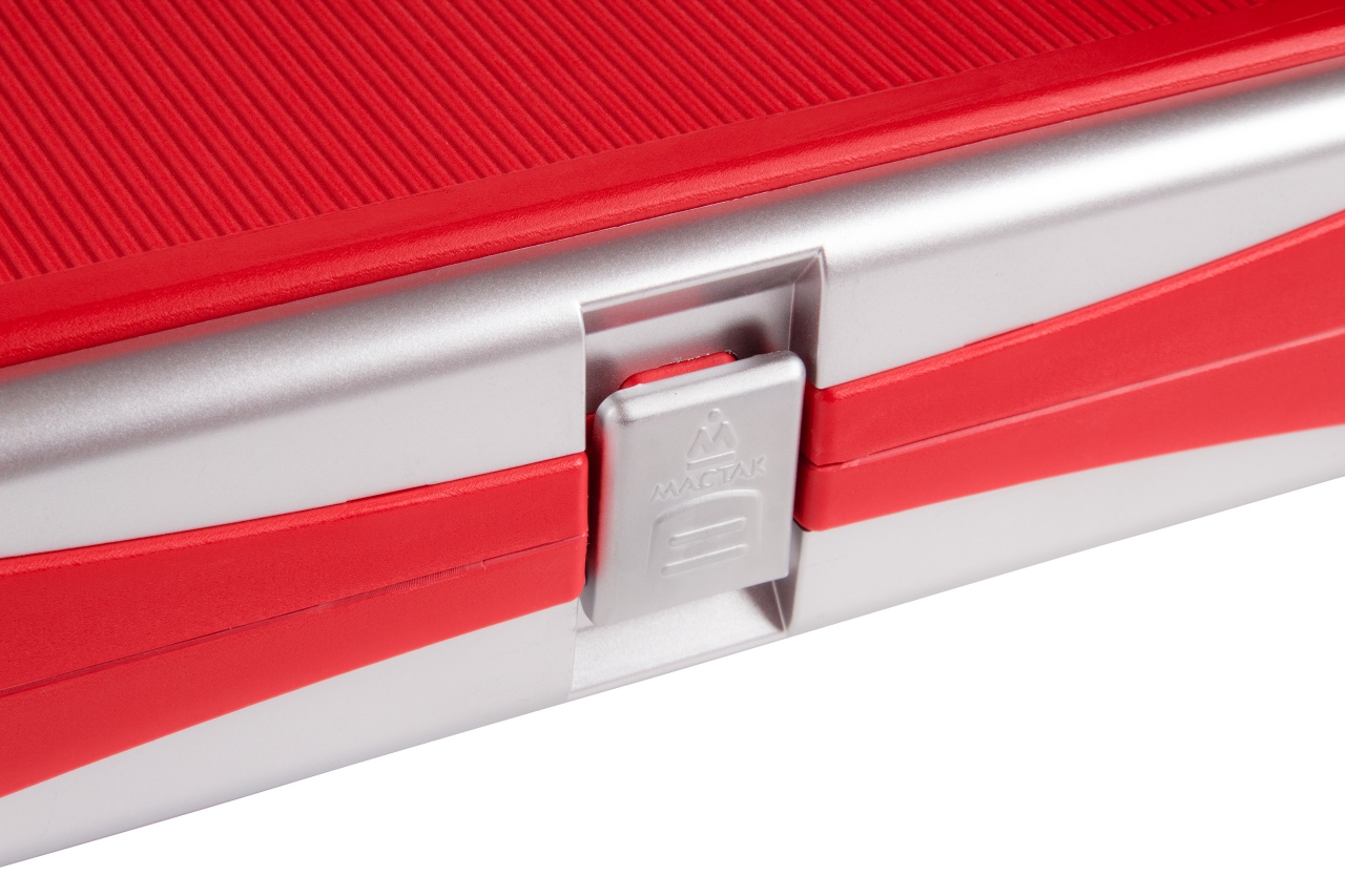 PE-HD пластик, ABS пластик (декоративные накладки) Замки металлические, тип фиксатора CLIP-LOCK Картонный рукав в фирменном стиле бренда МАСТАК |