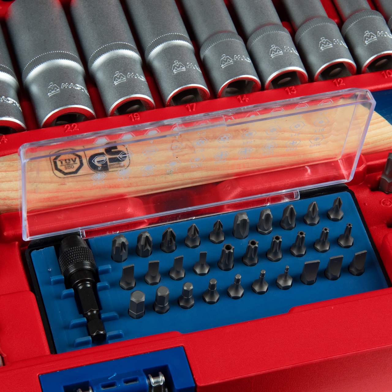 Материалы – инструментальные стали Cr-V, Cr-Mo, SNCM+V (S2), хром, пластики PP, PP+TPR (рукояти), конструкционная сталь, дерево (рукоять молотка)
