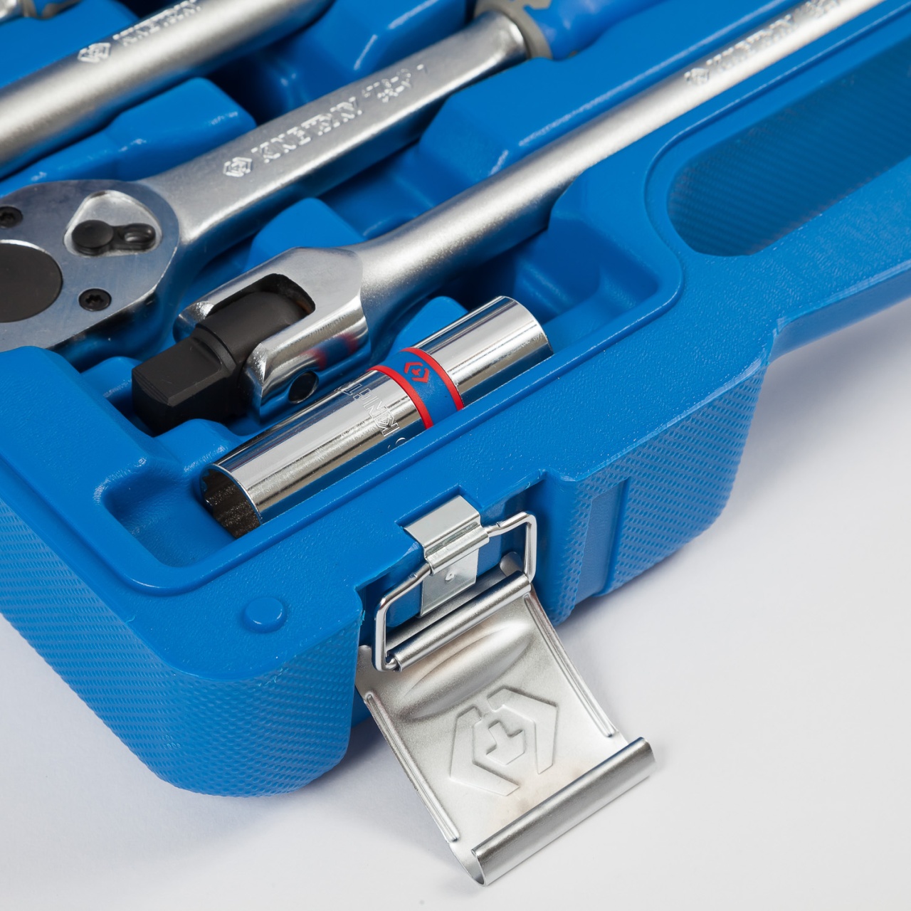 Набор подойдёт в качестве надёжного помощника для любого автомобиля в дороге, для работы в гараже, а также в любой мастерской или станции ТО.