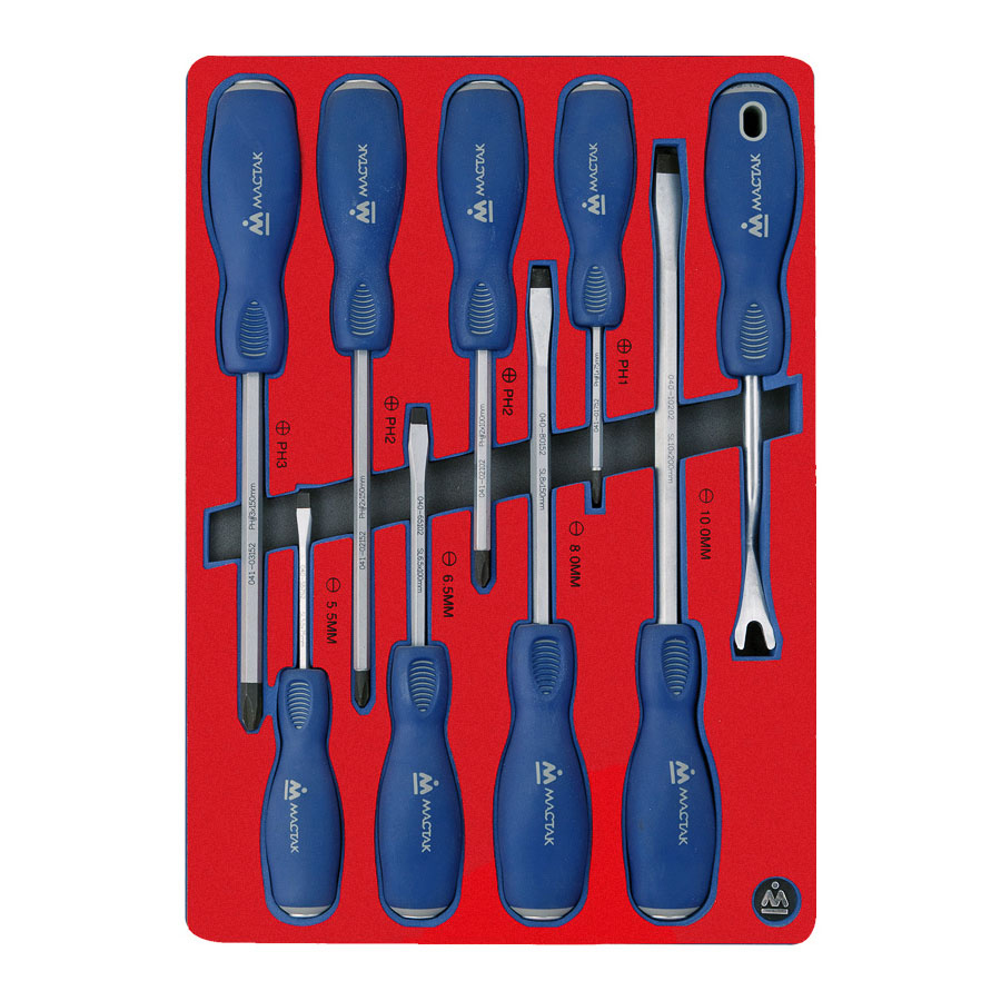 Материалы – инструментальные стали SNCM+V (отвёртки), Cr-V, хром, PP+TPR (рукояти), EVA+PP (ложемент)