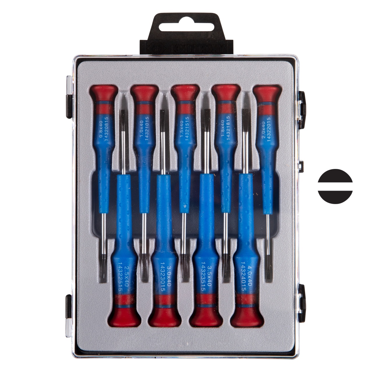 SL0.8×40, SL1.0×40, SL1.5×40, SL1.8×40, SL2.0×40, SL2.5×40, SL3.0×40, SL3.5×40, SL4.0×40 мм |
