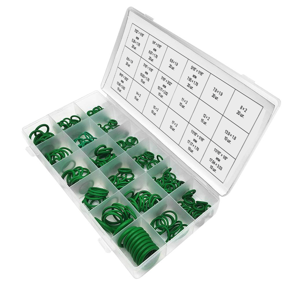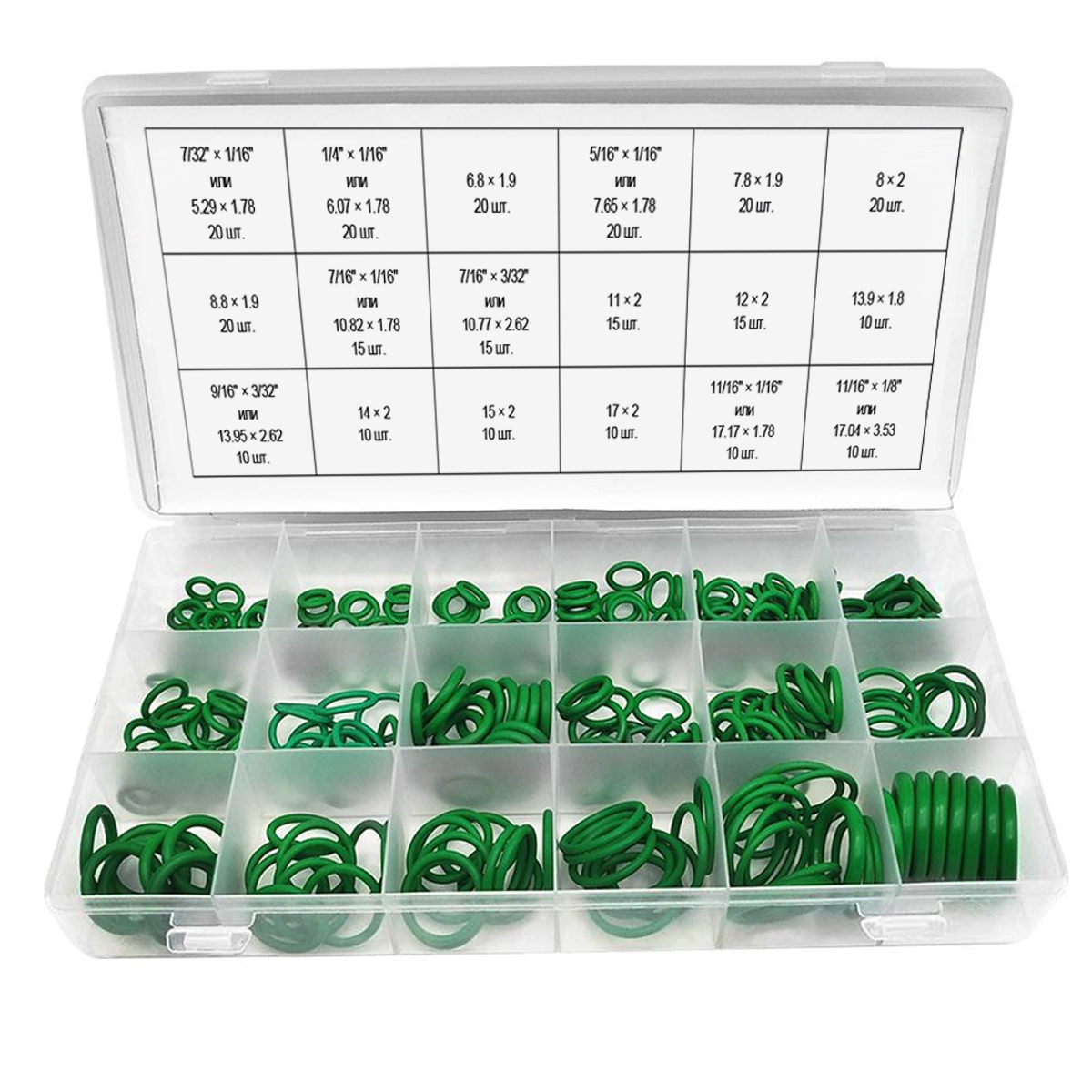 Набор уплотнительных колец 265 шт. используются в качестве расходных материалов при ремонте и обслуживанию систем кондиционирования автомобилей, использующих хладагенты марок R-12 и R-134A.