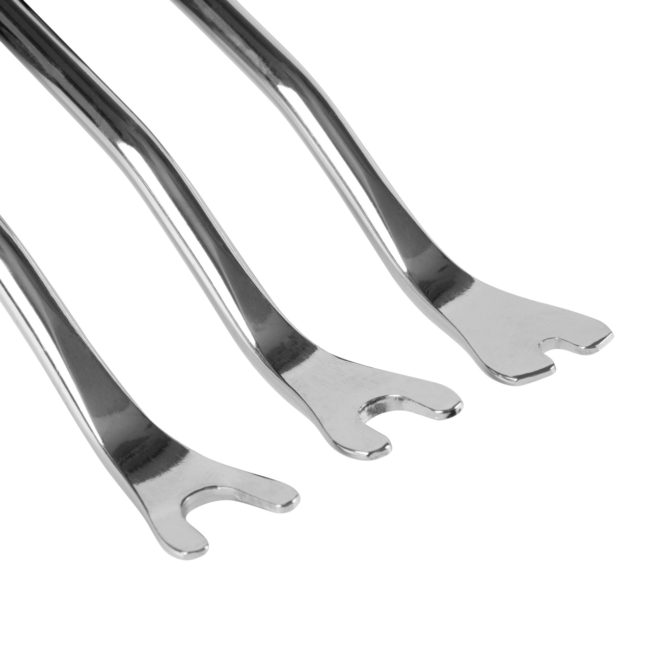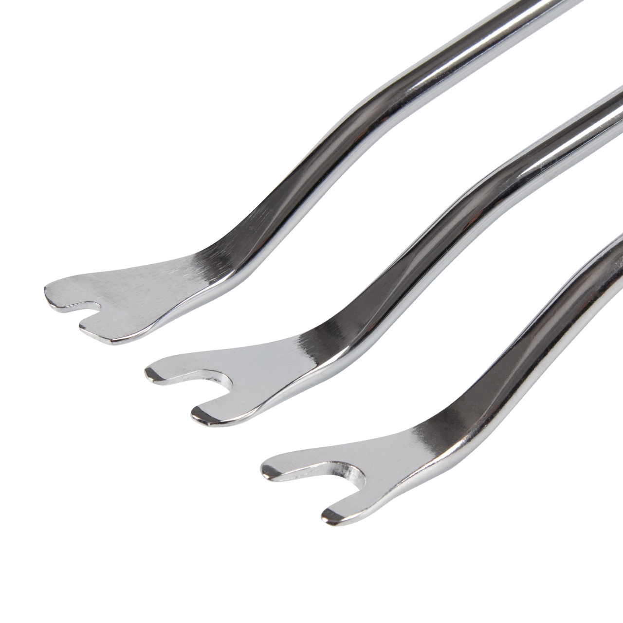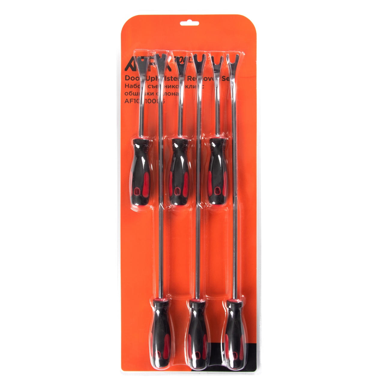 Инструменты имеют эргономичные рукояти из двухкомпонента PP+TPR, а форма съёмников позволяет проводить работы без опасения повредить приборную панель или внутреннюю обшивку авто.