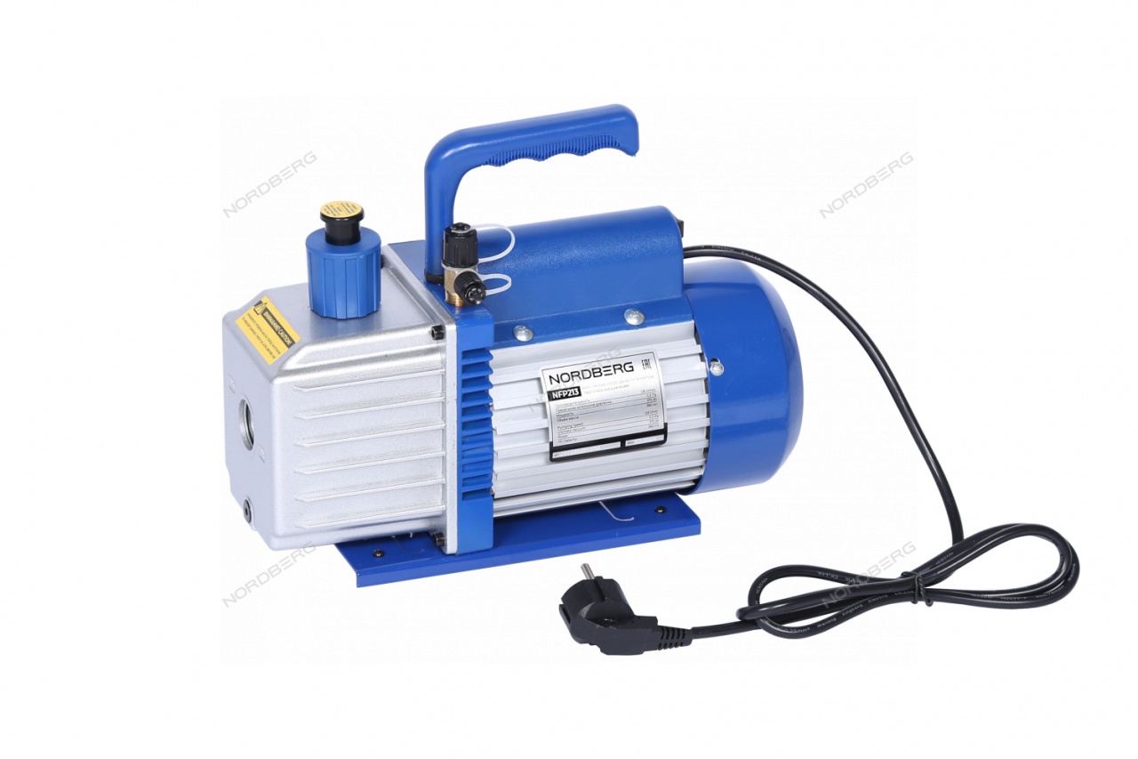 NORDBERG NFP213 — двухступенчатый вакуумный насос для профессионального применения. Используется в сервисном обслуживании холодильных и кондиционерных систем, обеспечивая качественное вакуумирование перед заправкой хладагентом.