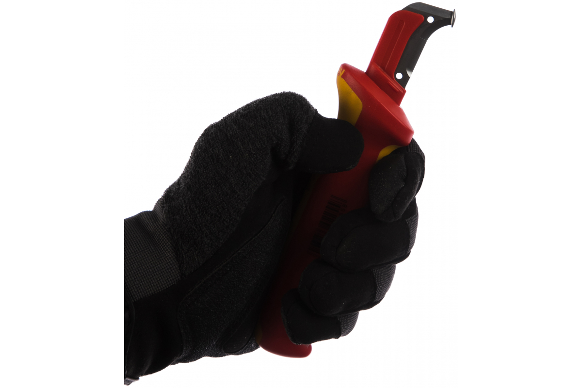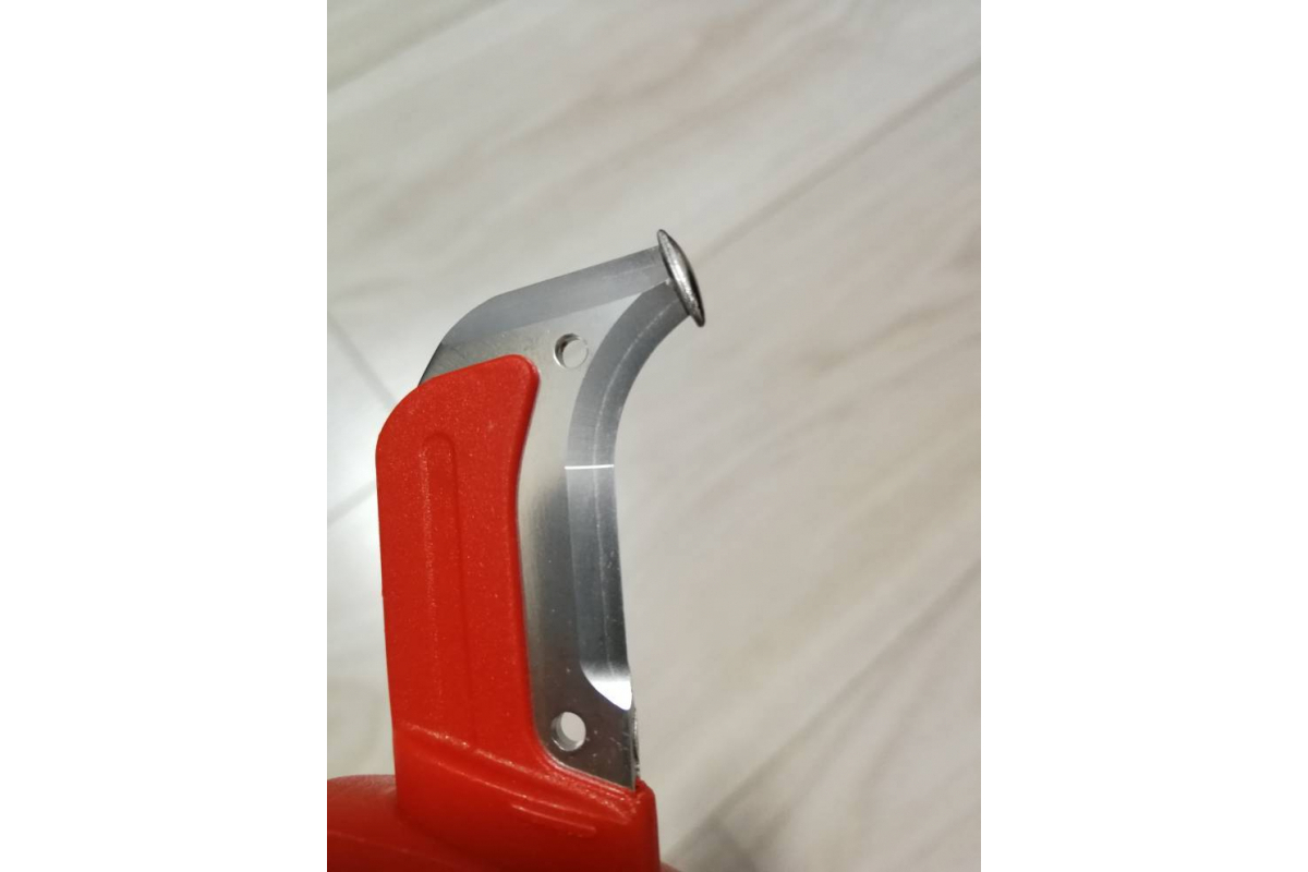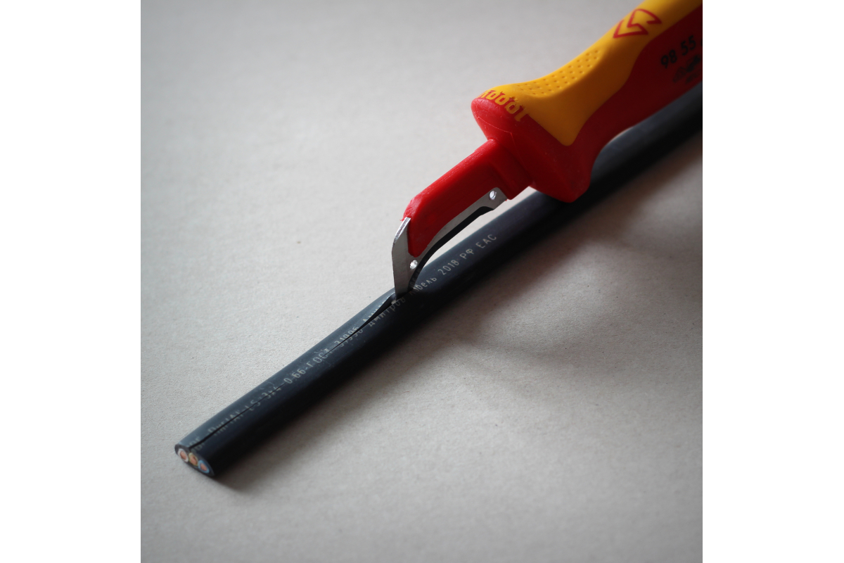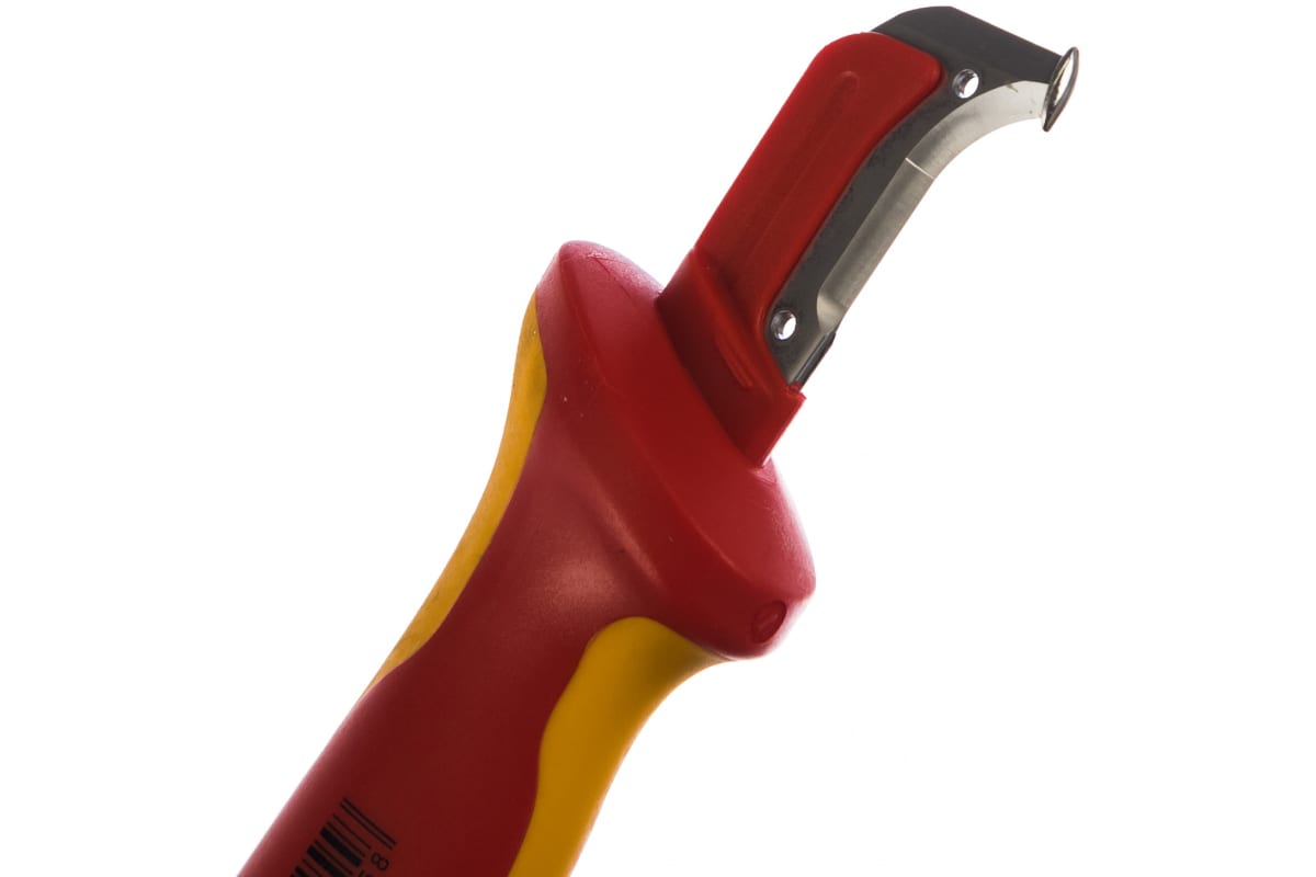 Нож для снятия изоляции KNIPEX KN-9855 предназначен для работы с электрическими проводами и кабелями. Фиксированное серповидное лезвие ножа имеет специальный опорный башмак на вершине, что исключает повреждение оболочки проводника. Малый вес - 0.068 кг и удобная противоскользящая рукоятка снижают энергозатраты оператора при работе. Длина стержня составляет 38 мм.