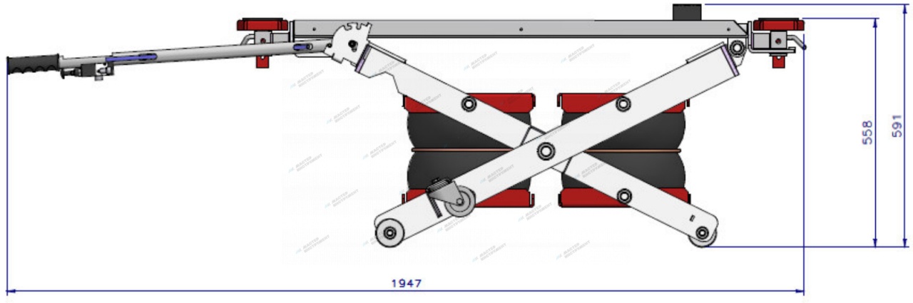 Ножничный пневматический напольный подъемниr, грузоподъемность 2,5 тонн может практически полностью заменить собой двухстоечный подъёмник.