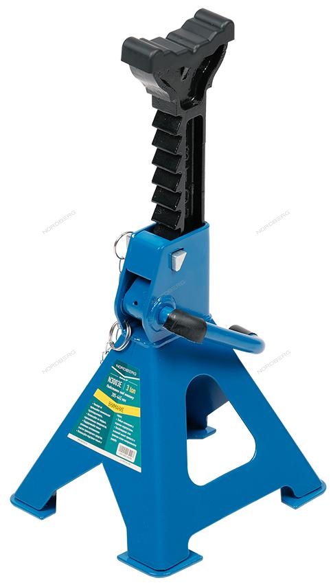Подставка под машину 3 т NORDBERG AUTOMOTIVE N3003E. Подняв автомобиль домкратом для выполнения каких-либо работ, важно зафиксировать его на нужной высоте. Не рекомендуется оставлять автомобиль на домкрате: механизм домкрата может неожиданно опуститься, он не расчитан на долговременную нагрузку. Назначение подставки – поддержка автомобиля на небольшой высоте для выполнения ремонтных работ, к примеру, для снятия-установки колёс, работ по ремонту подвески и т.д.