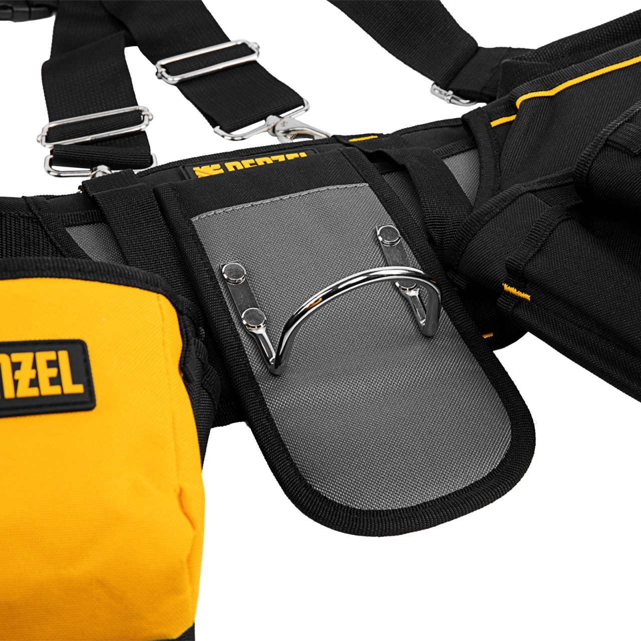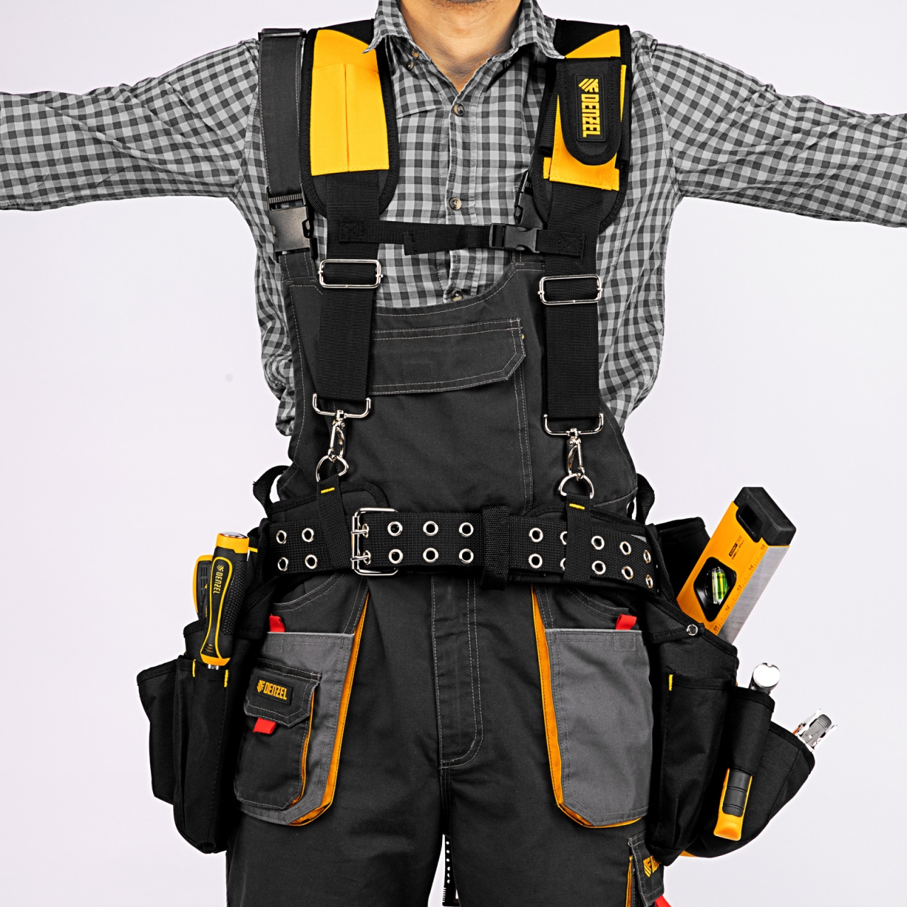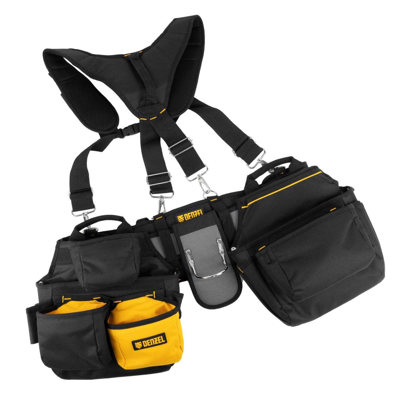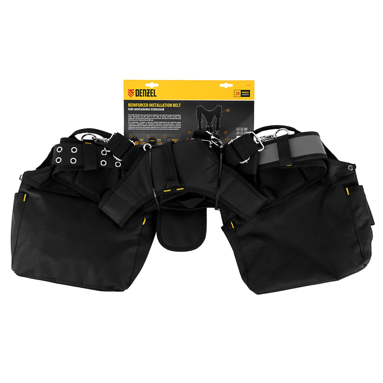 Пояс монтажника с лямками и поясными сумками предназначен для переноски ручного инструмента, необходимого при проведении монтажных, электромонтажных, слесарных и других видов работ.