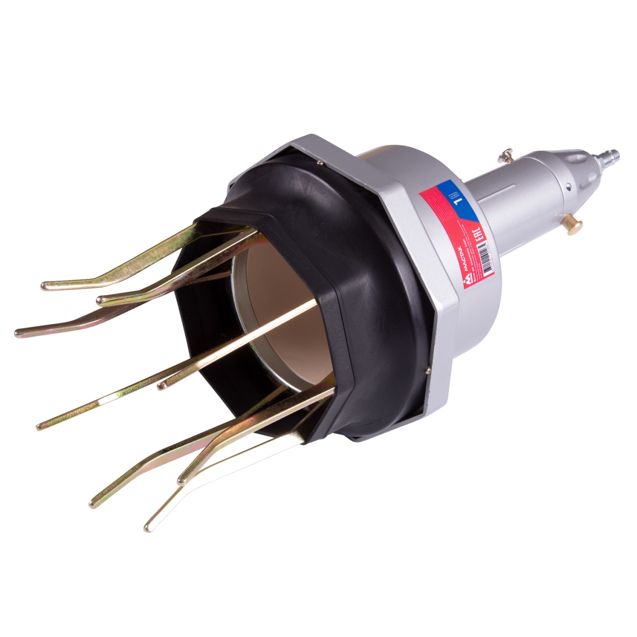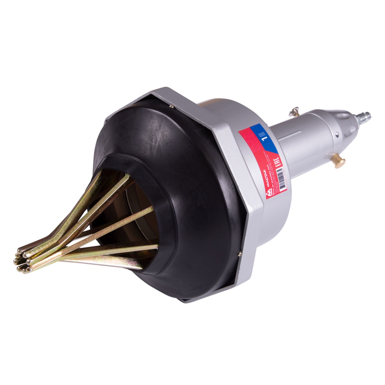 2. Подключите сжатый воздух и нажмите кнопку подачи давления – разжимные лапы раскроются до максимального диаметра 110 мм.